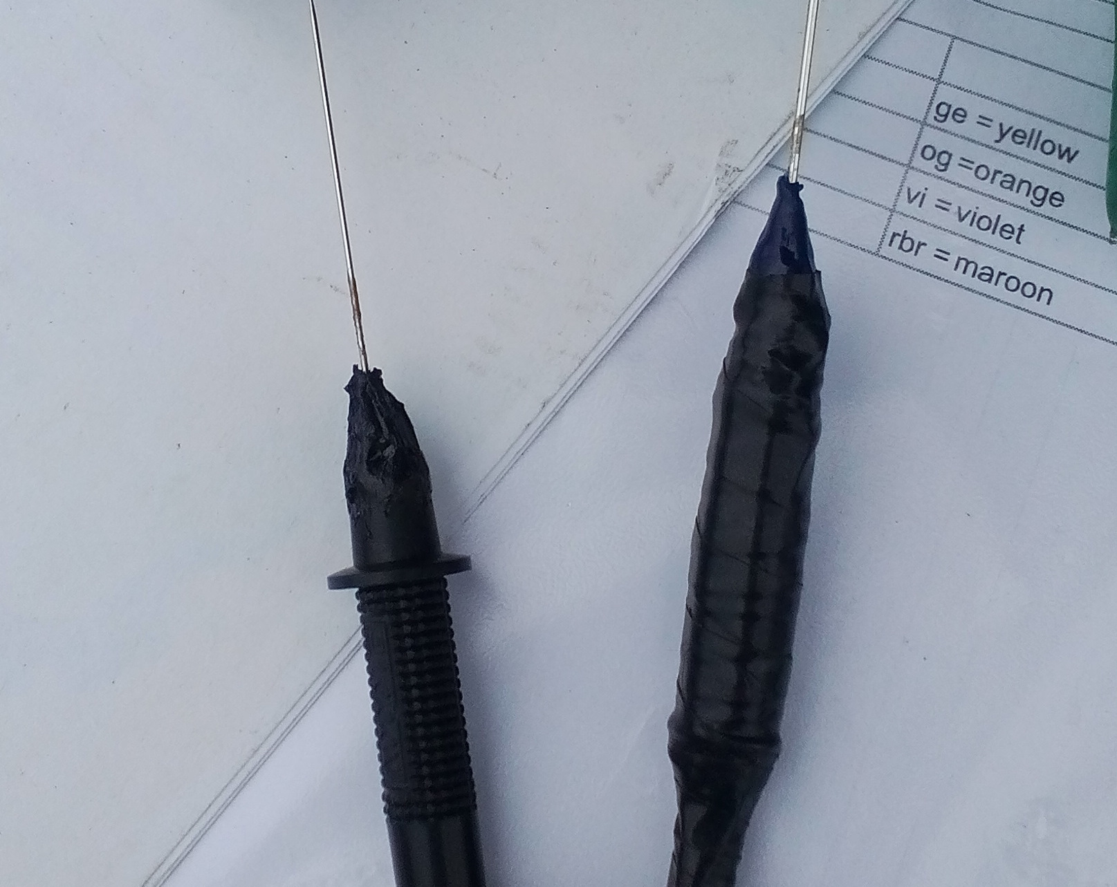 Из старых щупов мультиметра сделал модифицированные — припаял иголки и впаял их в пластик