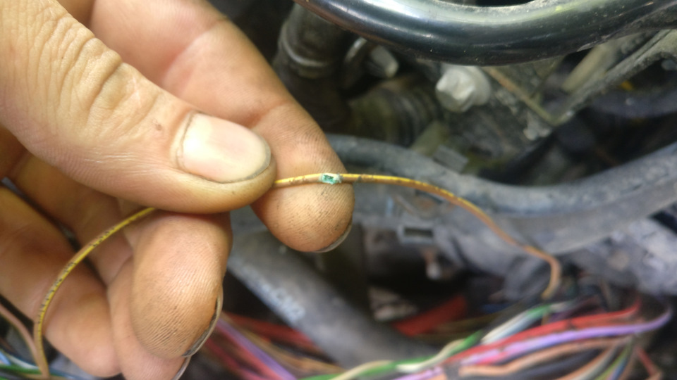 После дождливой погоды на утро выскочила та же ошибка. Перерыл все предохранители и реле, все в норме. Прозвонил этот провод, не звонится. Вскрыл всю косу, там уже с десяток восстановленных, но именно этот провод прогнил под впускным коллектором.