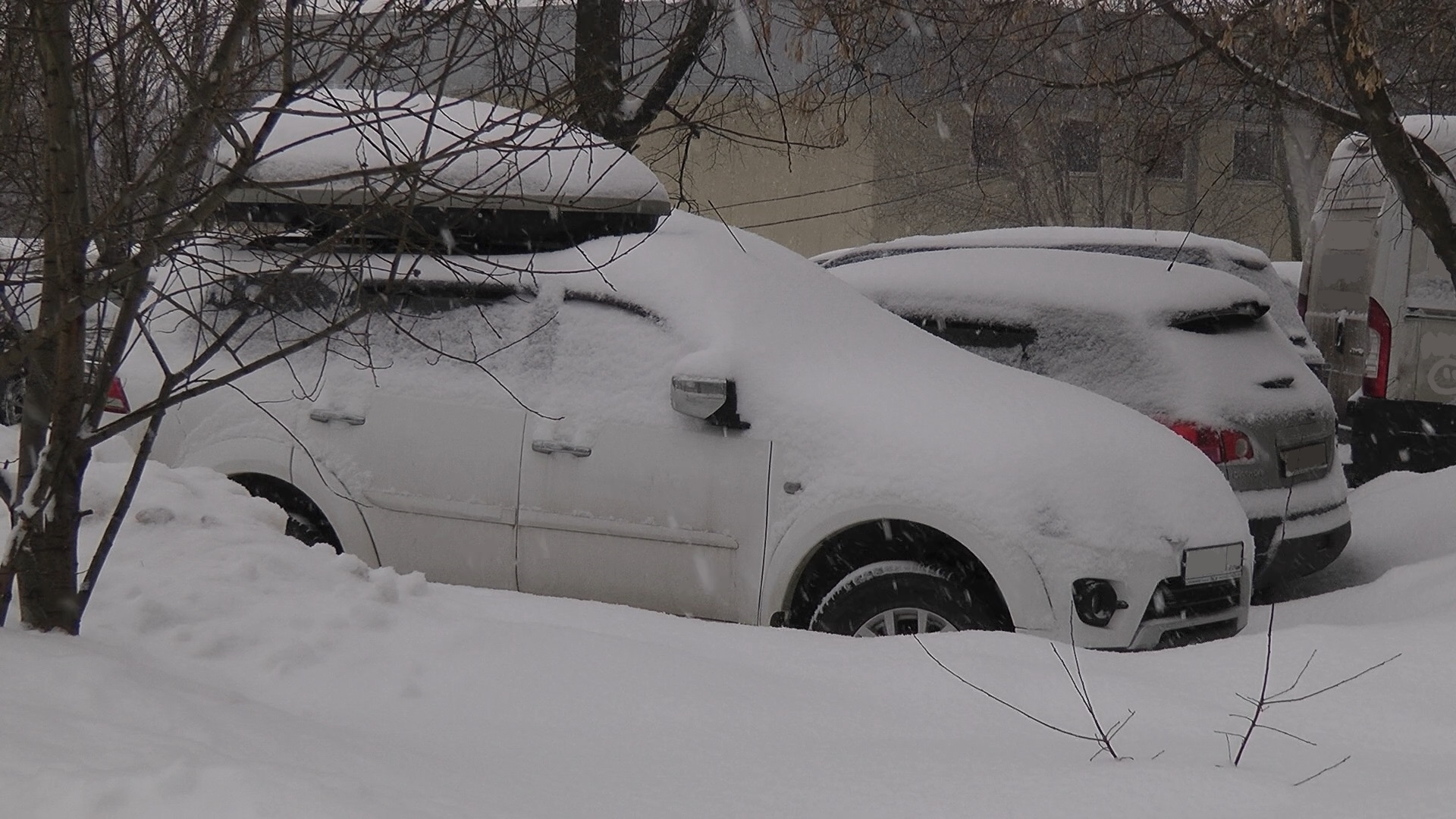 Зима выдалась снежная, и к весне вырос сугроб до самого капота.