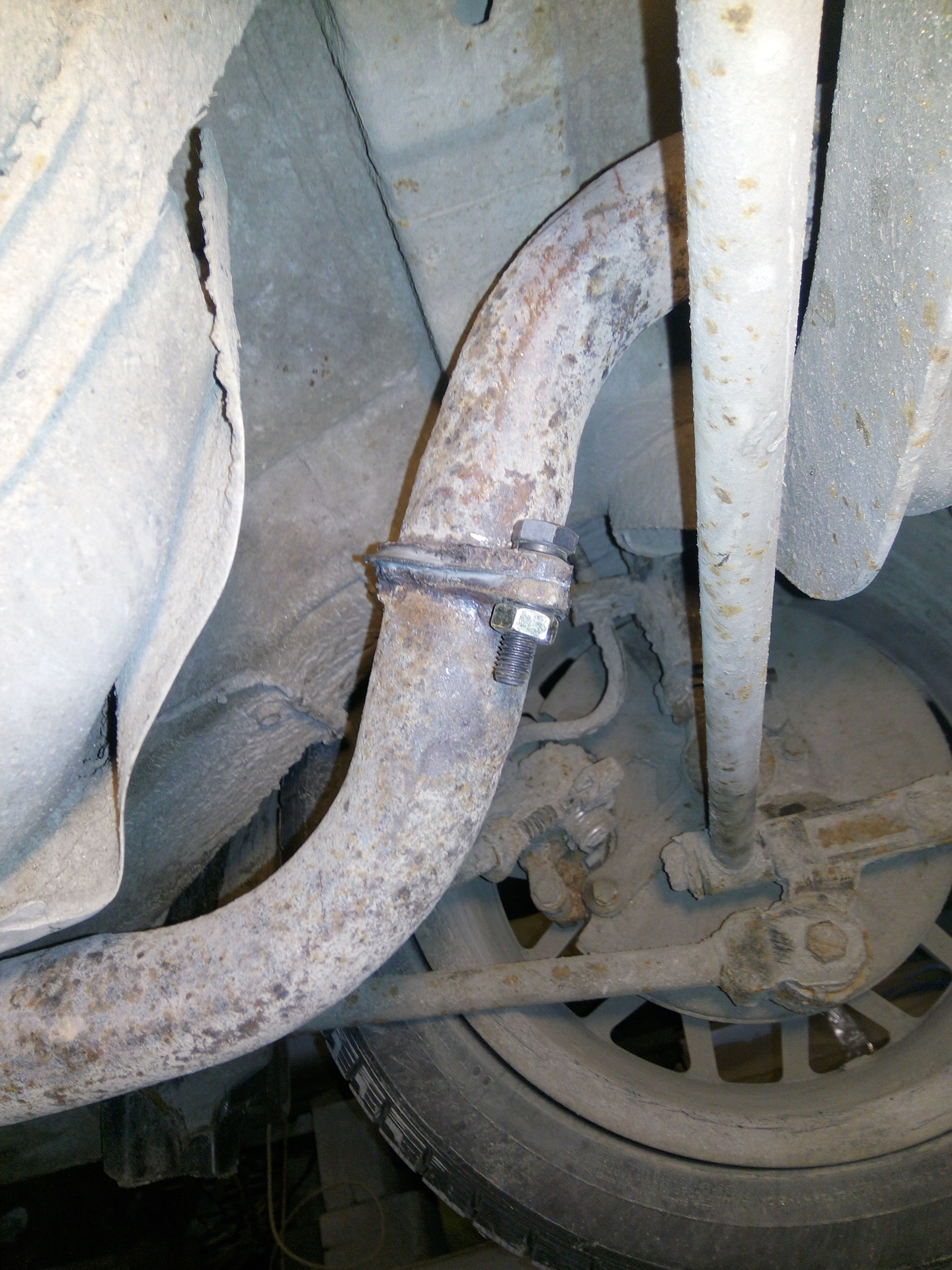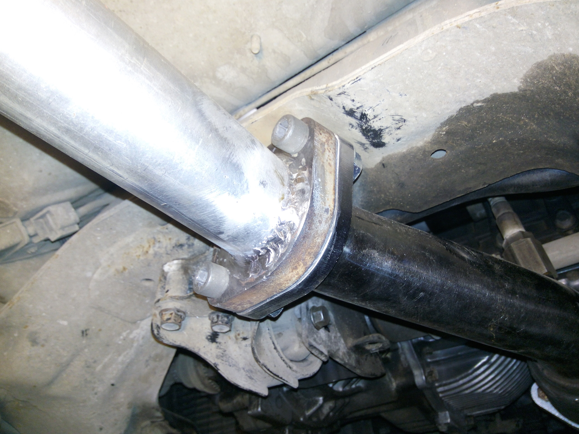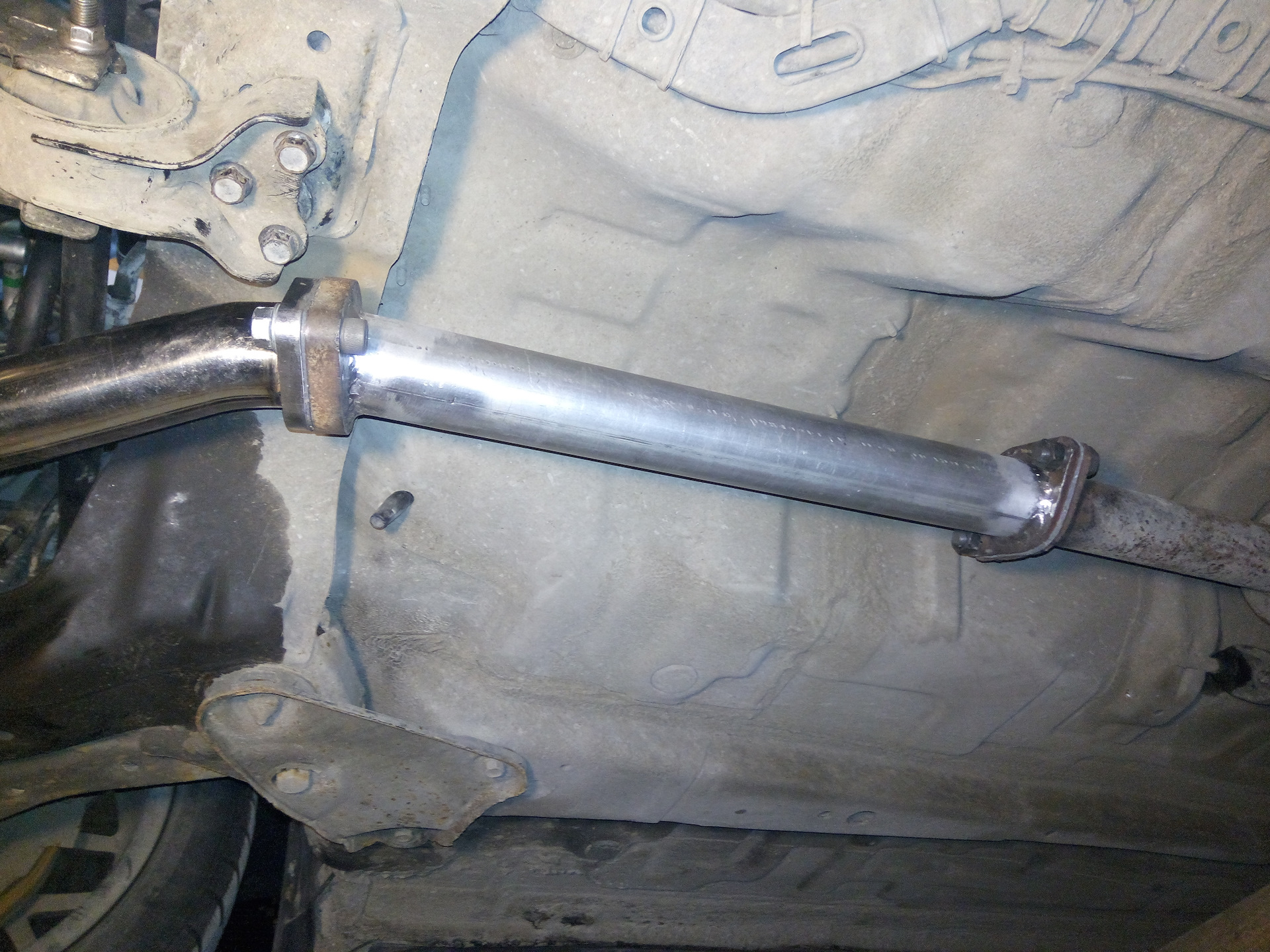 Родная труба спереди к нему приварена. И кронштэйны крепления варены.