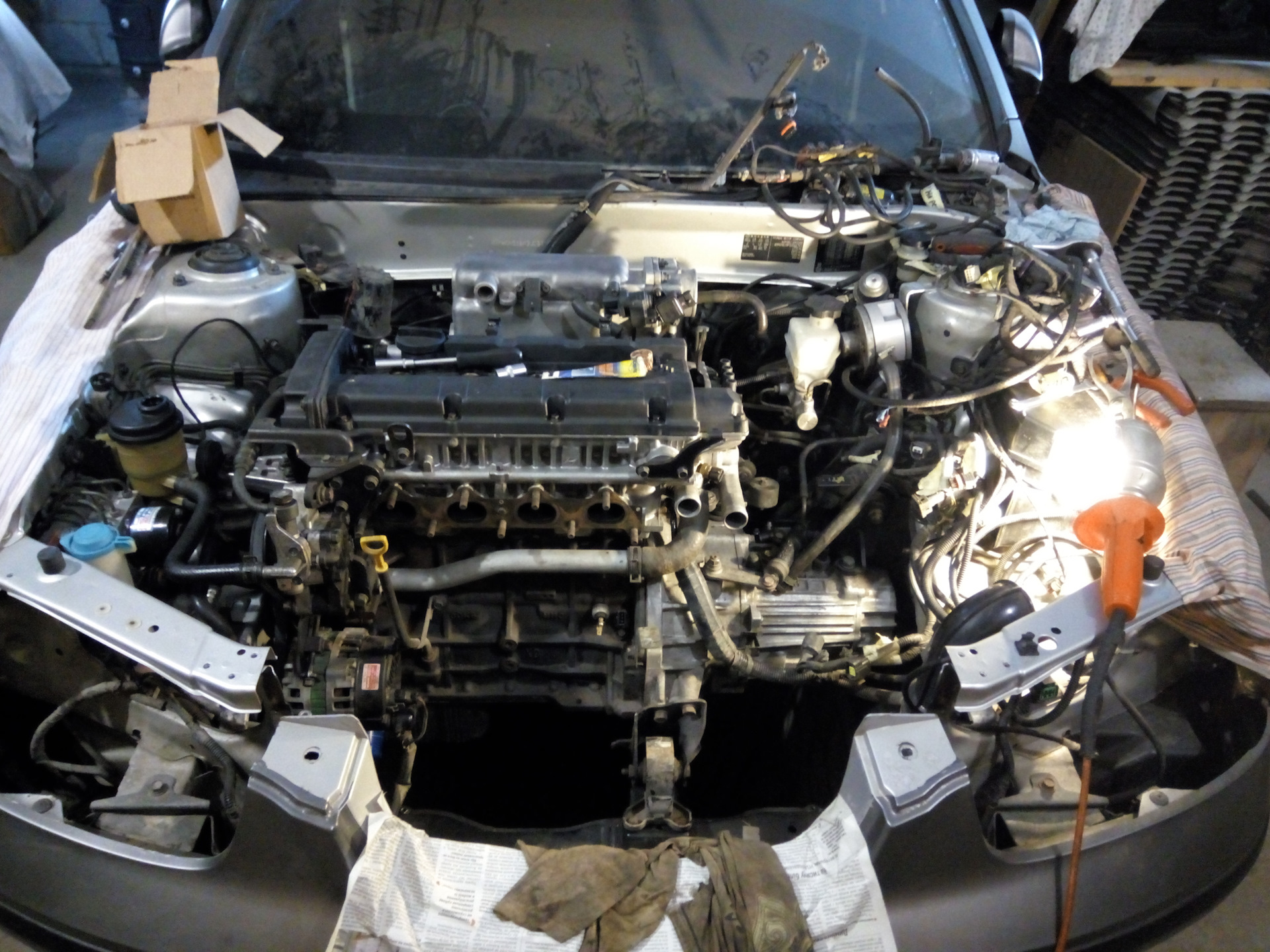 Решил сегодня написать про установку движка в подкапотное)) Дело было 8-10 марта. Неспеша и аккуратно опустил двигатель на место и прикрутил к подушкам