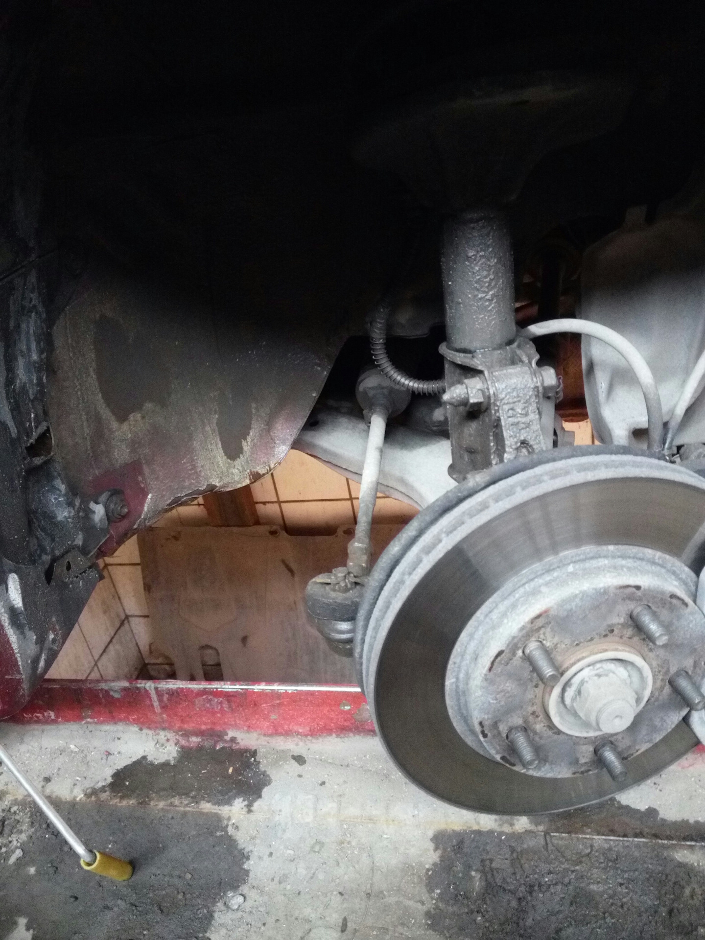 Протер все ветошью начисто с вывернутым колесом. Чтобы вал рейки тоже очистить. Намазал смазкой, в пыльник тоже набил на всякий случай. Отдел пыльник. Кстати налазит с небольшим усилием, но без геморроя. Собрал в обратном порядке — счастье))) + домкрат теперь нужен новый. Старый загулял во все стороны за 3 года не частого использования.