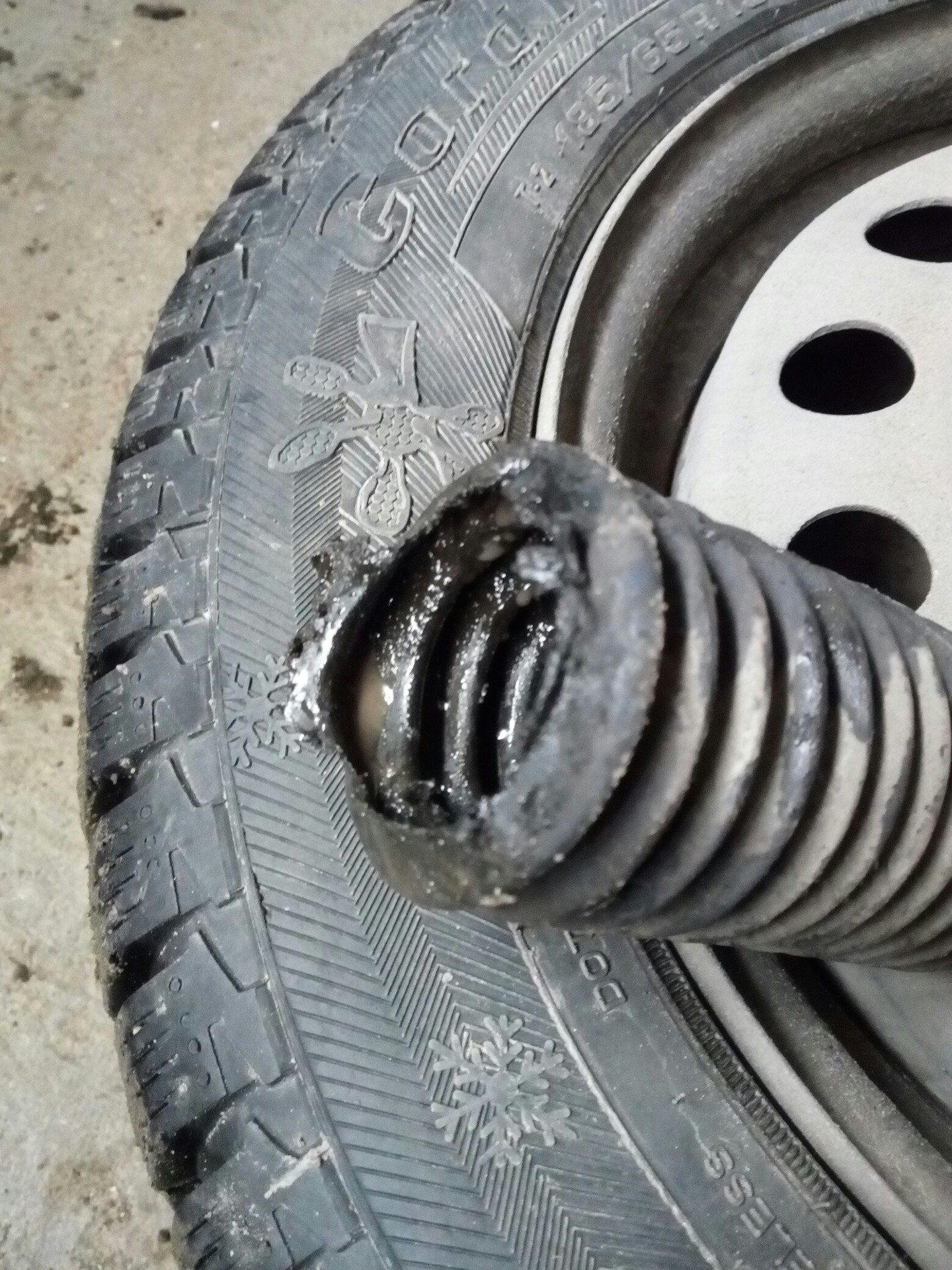 Домкратим, скидываю колесо. На развал ехать мало желания. Да и в руководстве по эксплуатации этот вариант прописан. Открутил наконечник рулевой тяги, посчитав количество оборотов. Открутил хомуты и снял старый пыльник. Грязи под ним особо не было но сырость присутствовала. Весна — лужи.