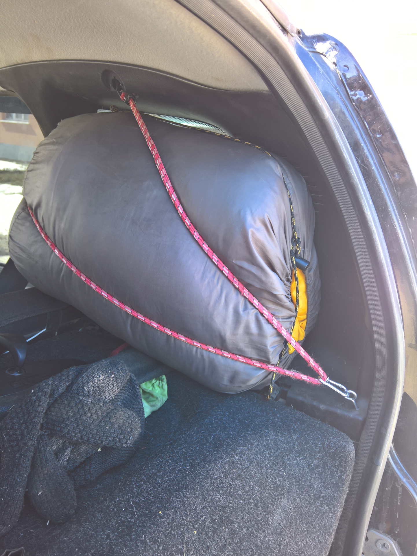 В салоне в районе ушей из резинки сделаны места для хранения спальников, полотенец, пледа, гамака и аптечек. И место не пропадает, и под рукой всегда.