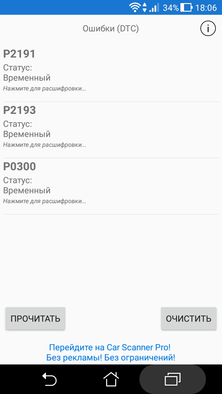 Да, тут еще есть ошибка Р0300 — многочисленные пропуски воспламенения. Но она пролетала редко.