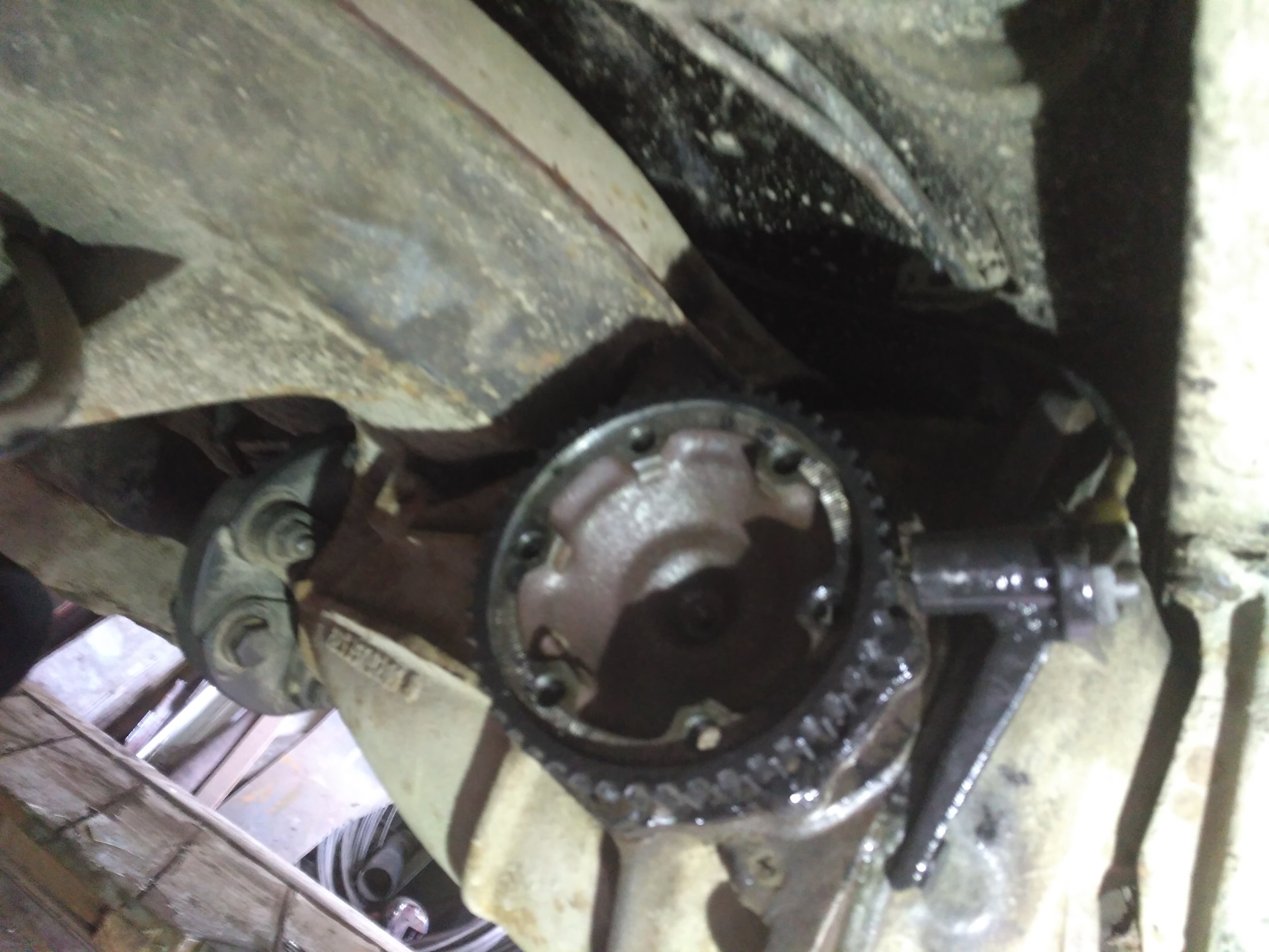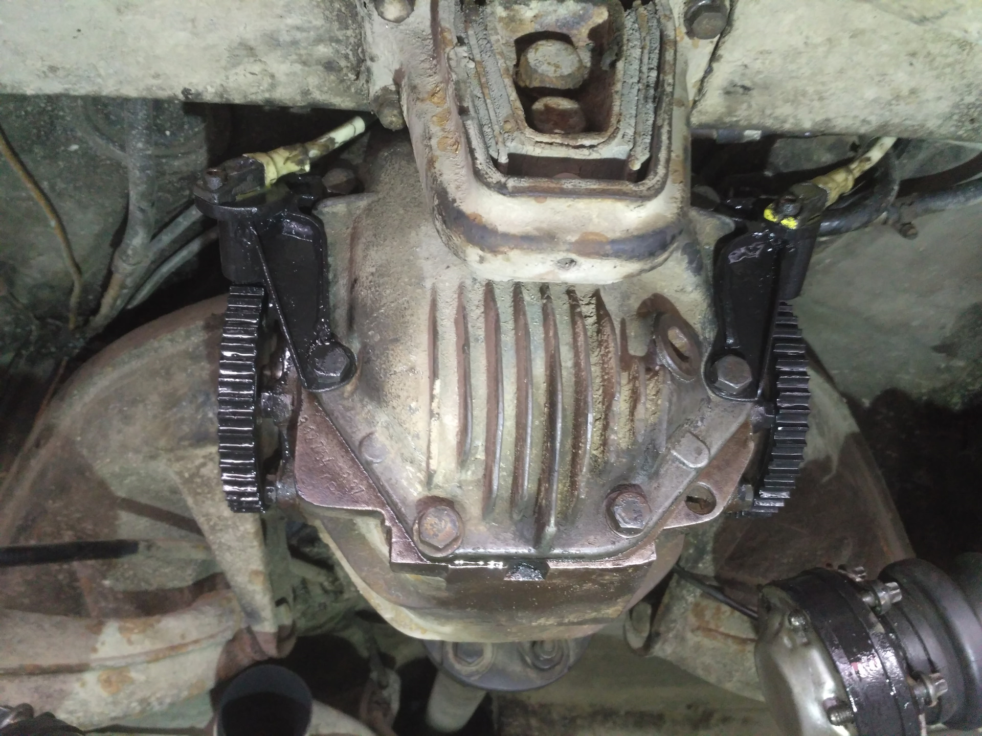 Начал сзади. Там, принципе, всё понятно, но очень неудобно — лучше всё делать на демонтированном редукторе. Однако, если очень постараться — можно и на машине.