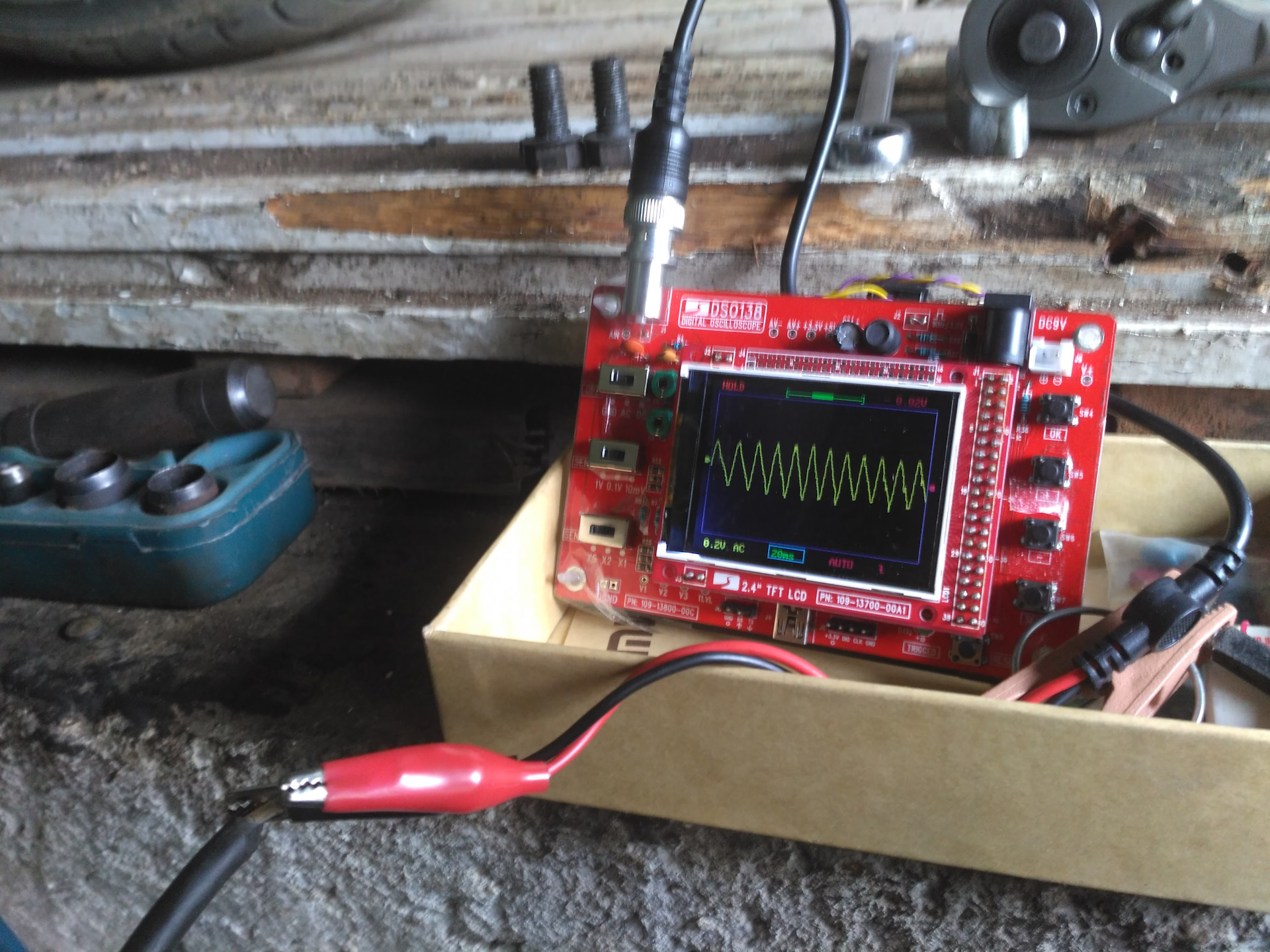 Работоспособность датчиков проверял конструктором-осциллографом. При зазоре между датчиком и венцом (их вершинами) в 0,54 мм получилась вот такая картинка: