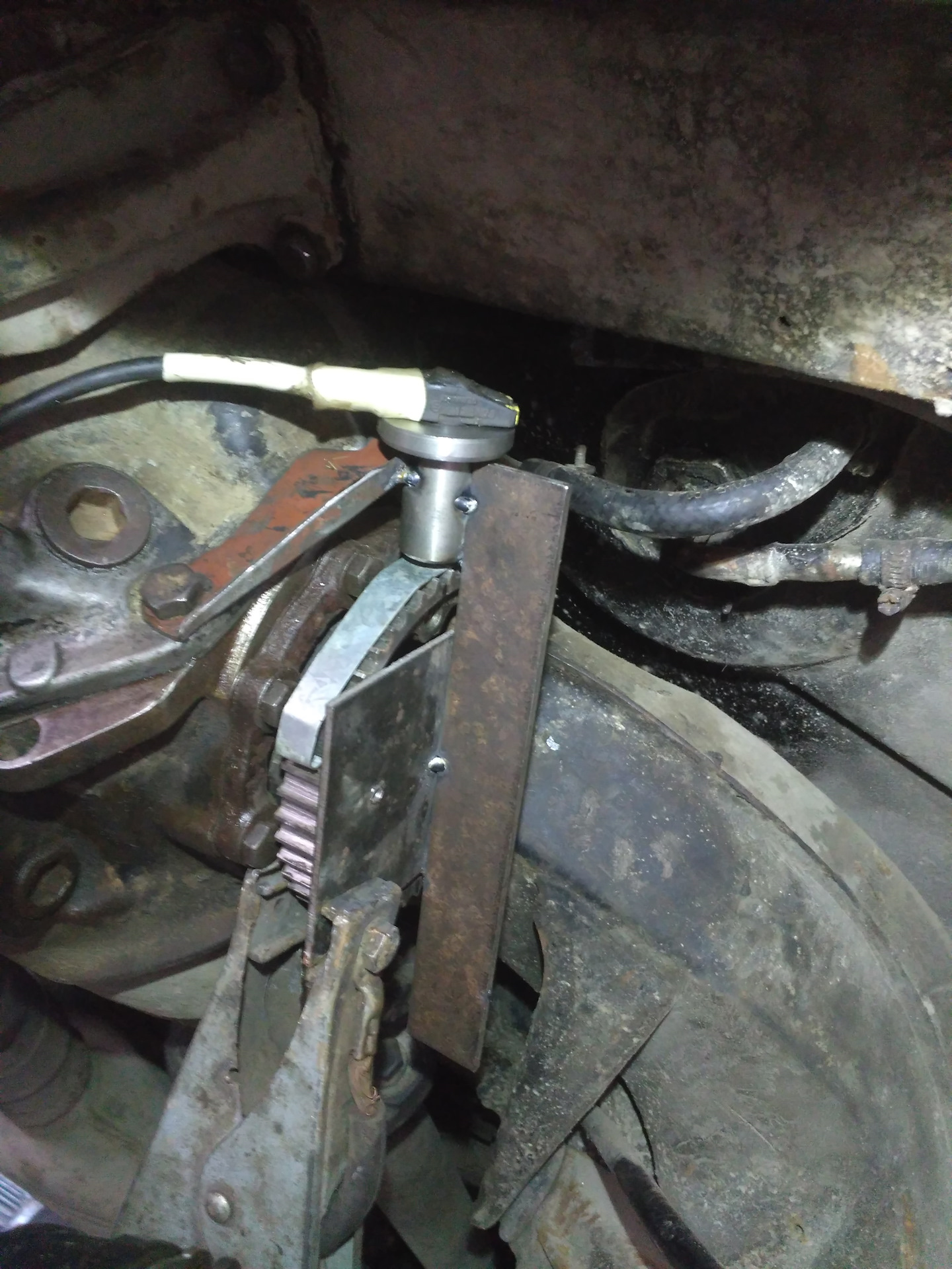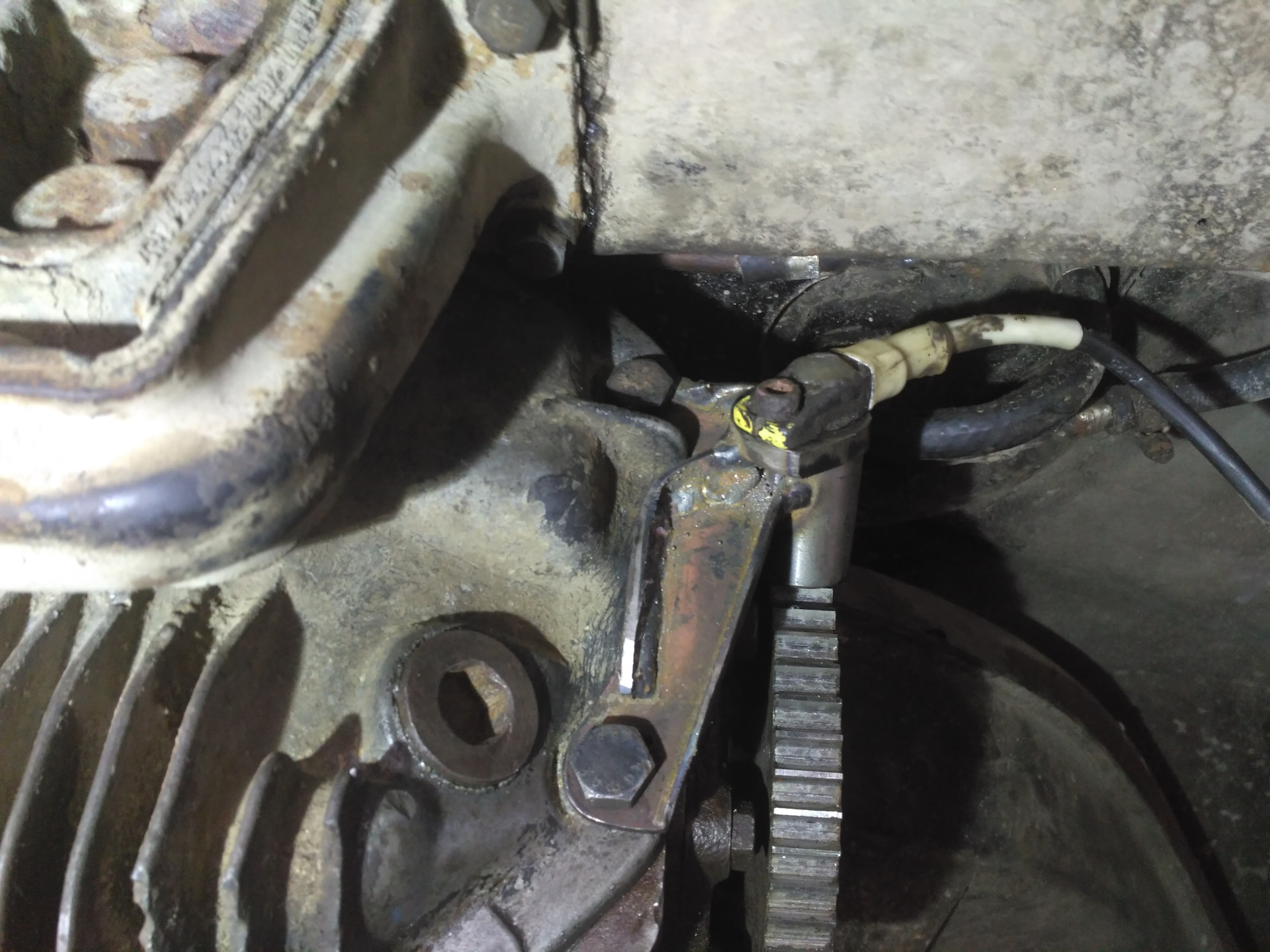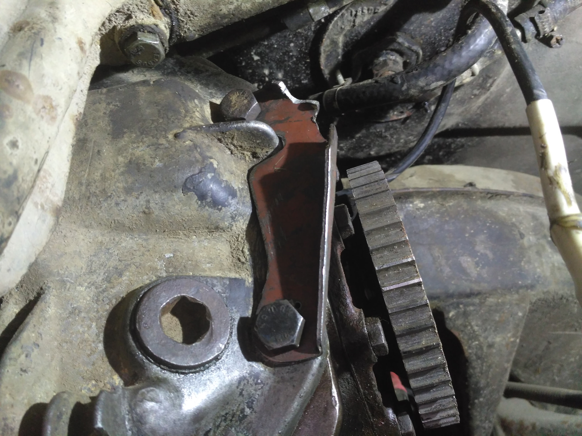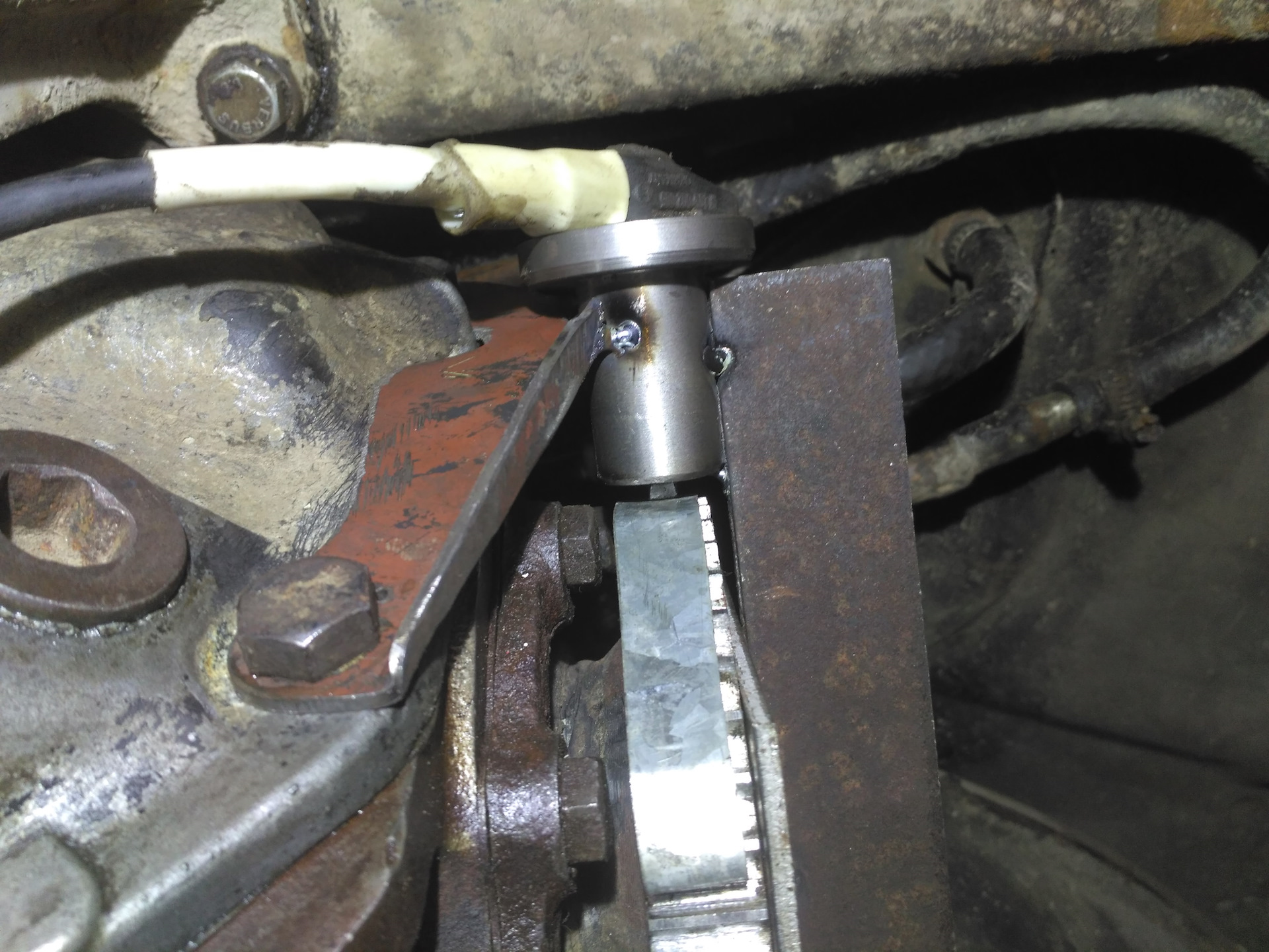 После проверки и окончательной обварки, необходимо снова установить датчик на редукторе и повернуть его так, чтобы носик датчика был параллельно зубьям. Это видно на фото выше. В этом положении можно отметить отверстие, а дальше дело техники — просверлить, нарезать резьбу, обрезать лишнее.