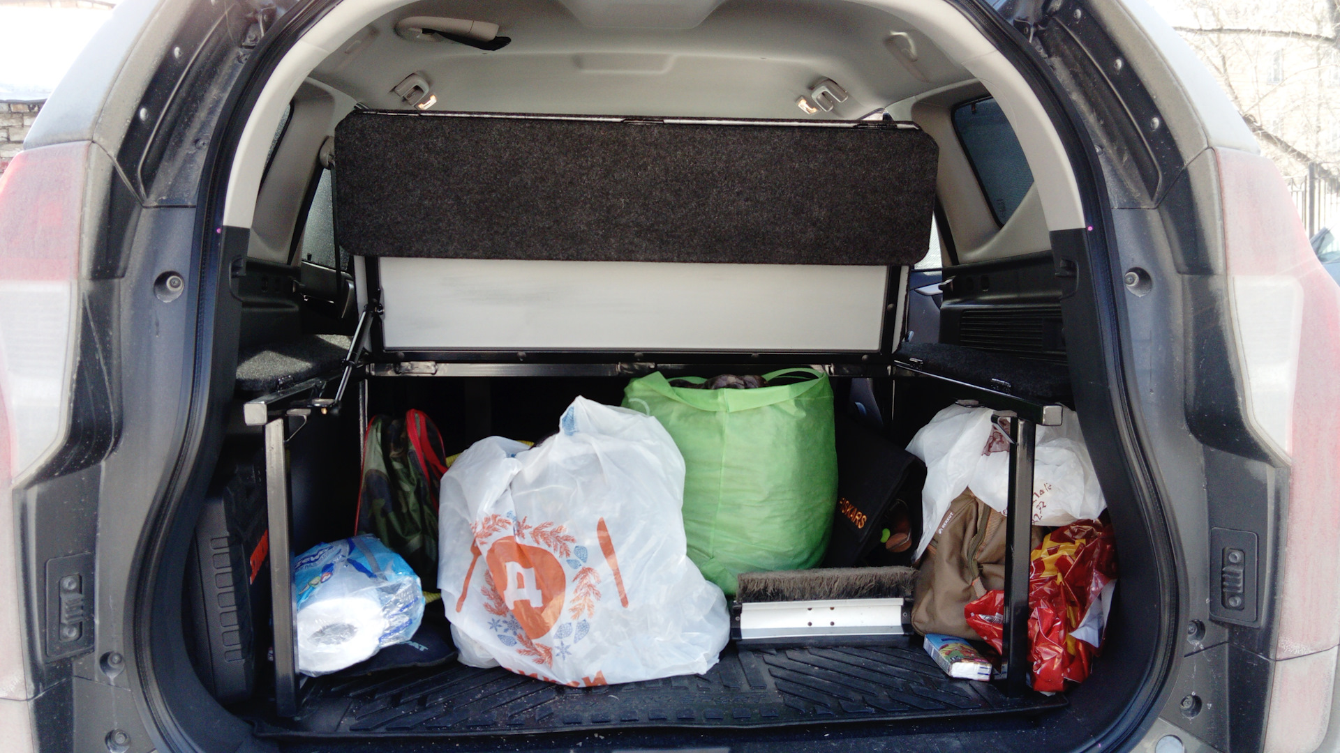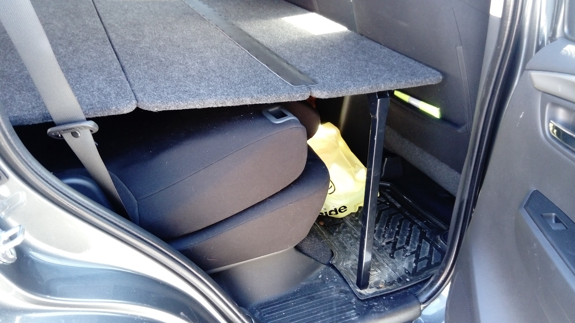 Хороший вариант. Никак не напишу в бж отчет. Можно ездить не складывая полностью, если крайнюю часть (со стороны водительского сидения) немного приподнять. Получается, что она встает под 45°. На этой неделе напишу бж со всеми фото