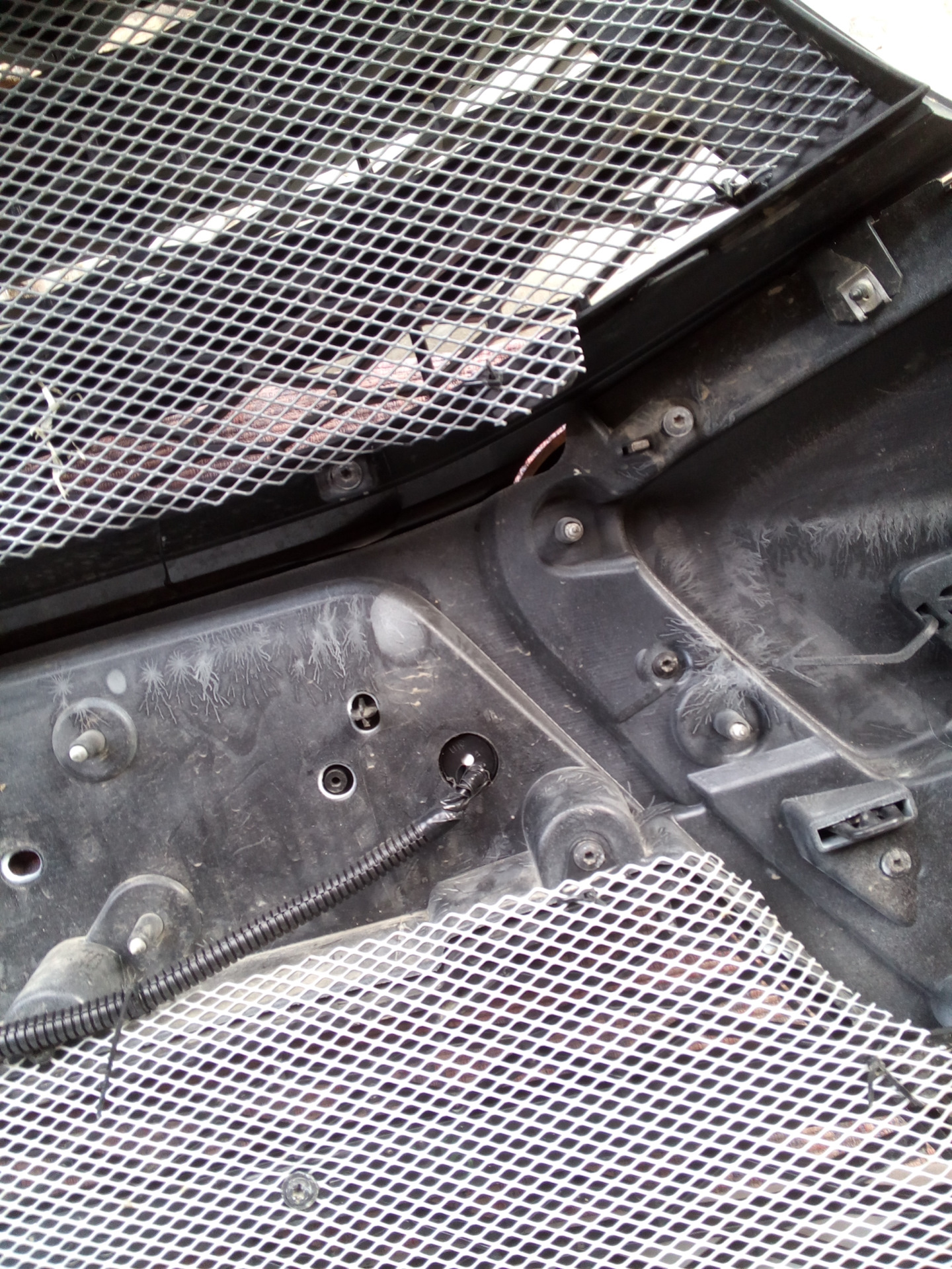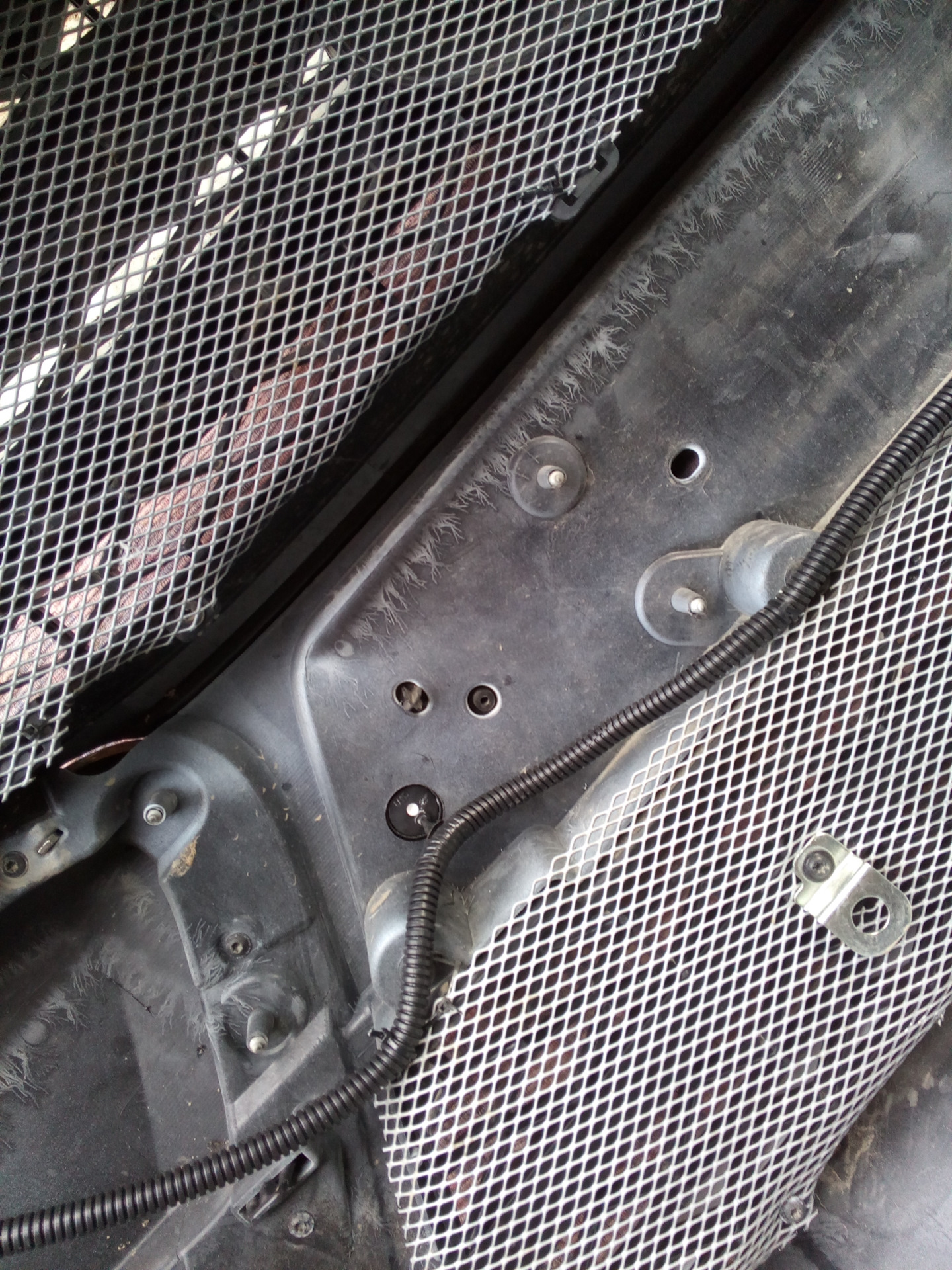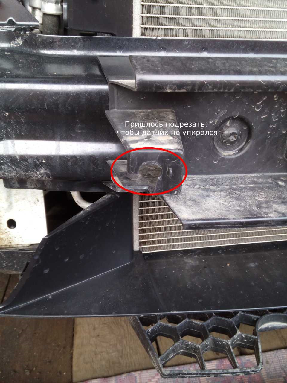 После установки датчиков начал ставить бампер обратно. И тут сюрприз меня ждал. Датчики уперлись в пластиковую штуку на балке бампера.