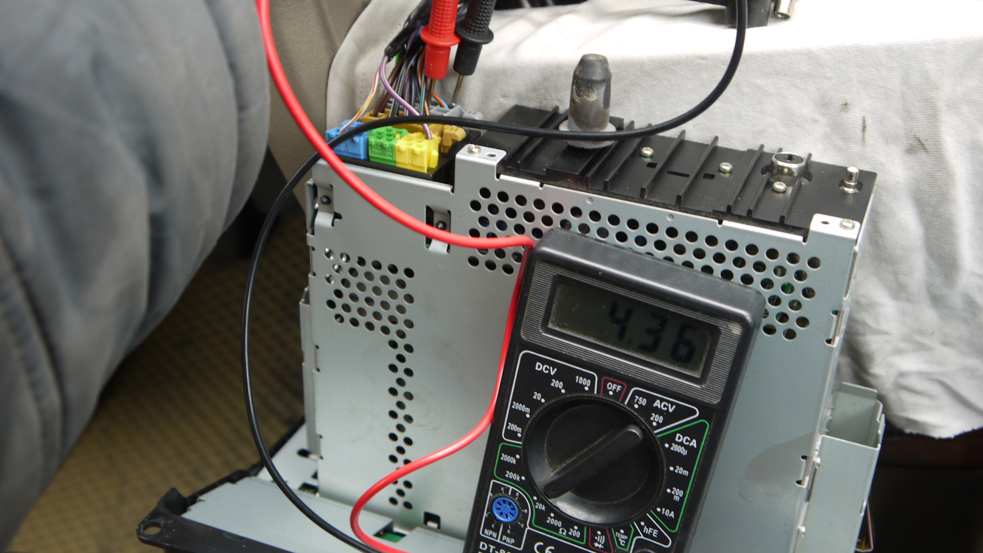 Берем мультмитр и начинаем прозванивать найденные провода — Сине-фиолетовый — Коричневый и — -Сине-оранживый — Зеленый. При нажатии кнопки на руле сопротивление меняется, провода найдены, к ним и будет подключать адаптер MFD207UN-DIP.