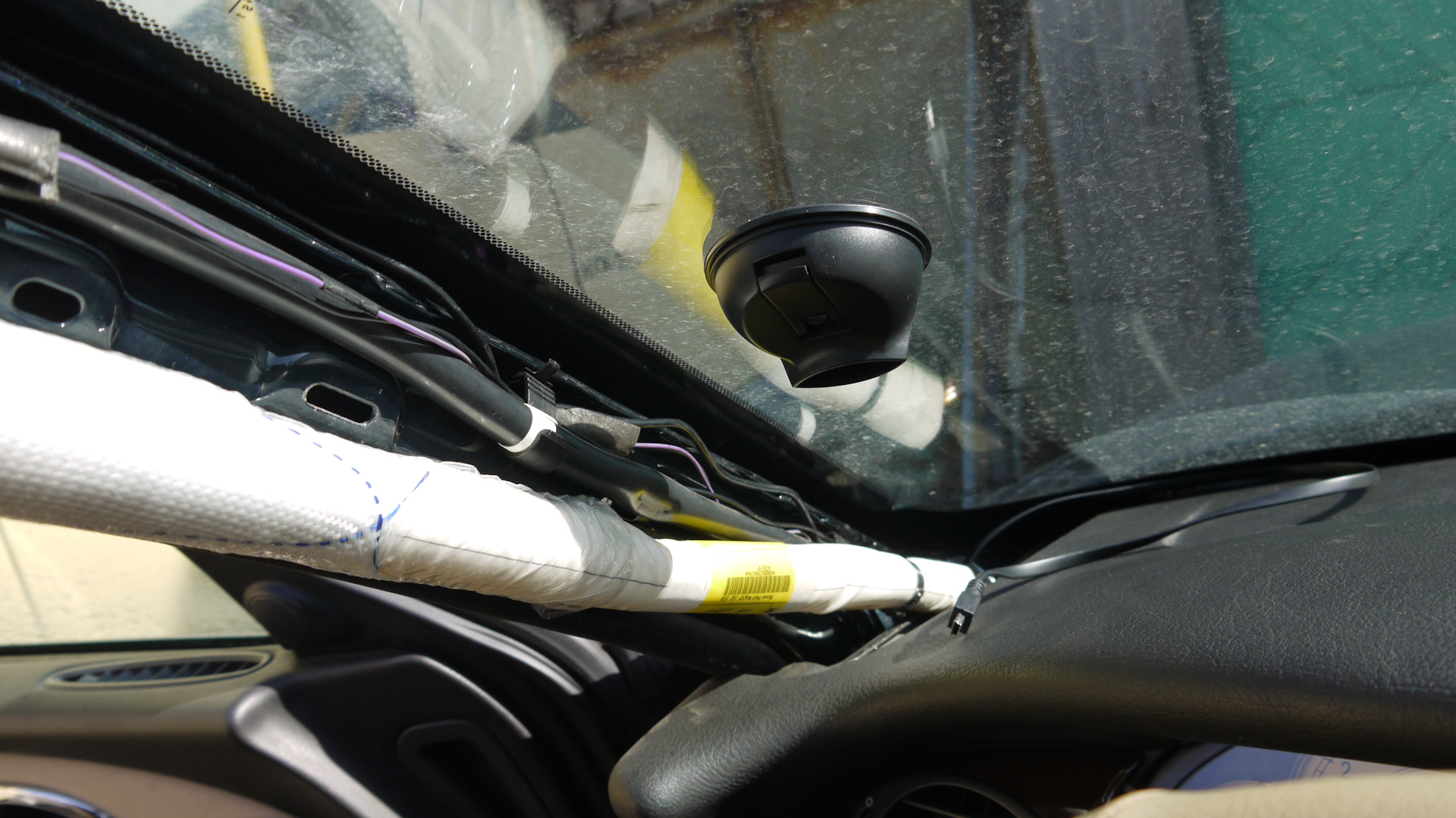 Микрофон очень удачно закрепился на потолке, возле плафона освещения, открытию козырька не мешает. Есть идея установить микрофон в плафон освещения, где есть отверстия. Опробуем, как будет слышно меня вов ремя разговора.