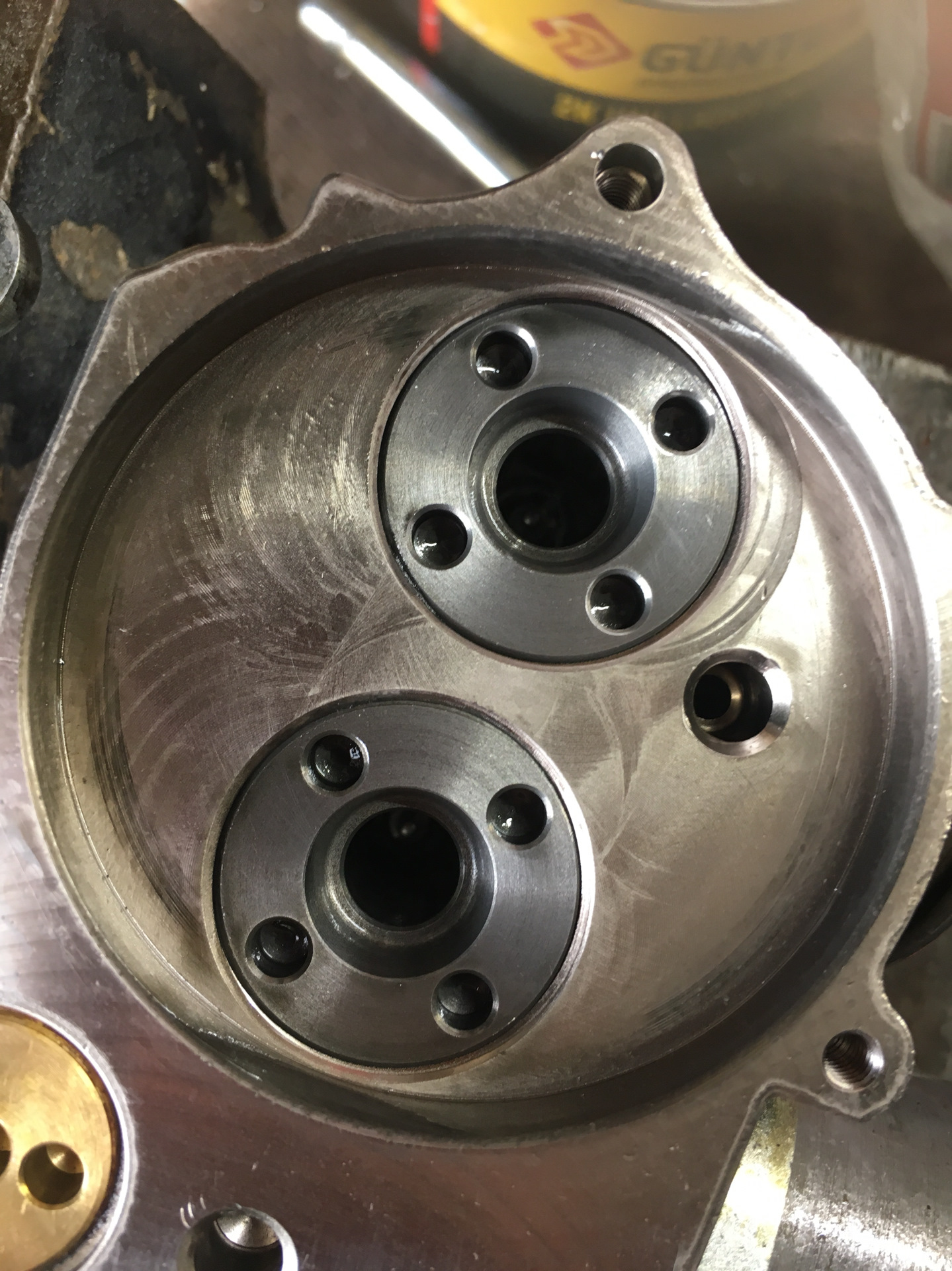 Ещё раз для уточнения. Ты его просто разобрал до состояния, как на фото, промыл, заправил маслом и собрал в масле. Ничего не менял?
