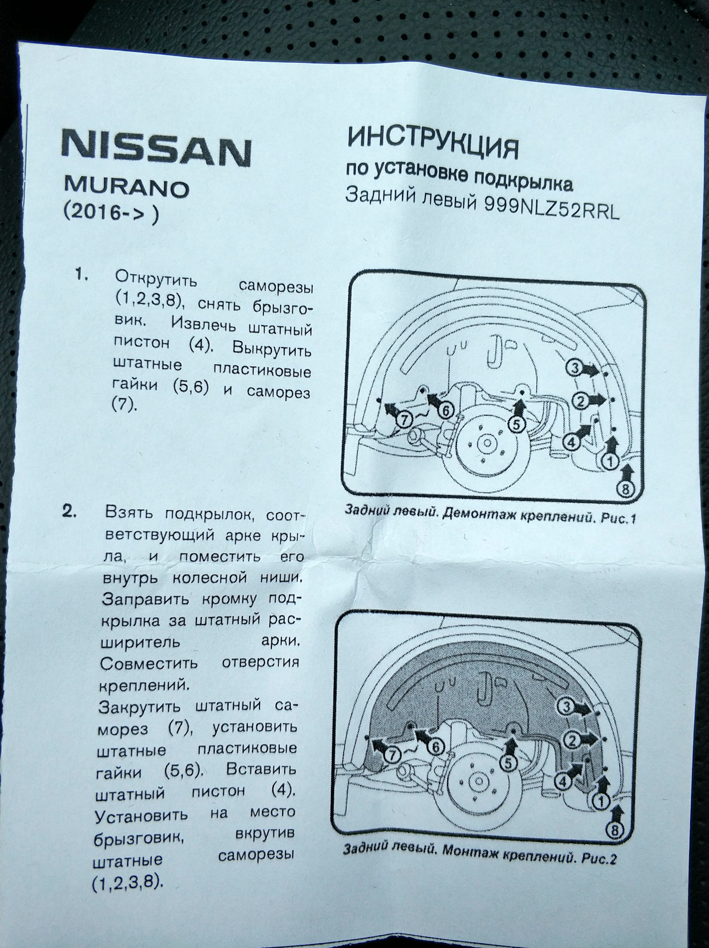 2) Nissan 999NLZ52RRL — подкрылок nissan murano 2016 задний левый z52 — 834 руб.