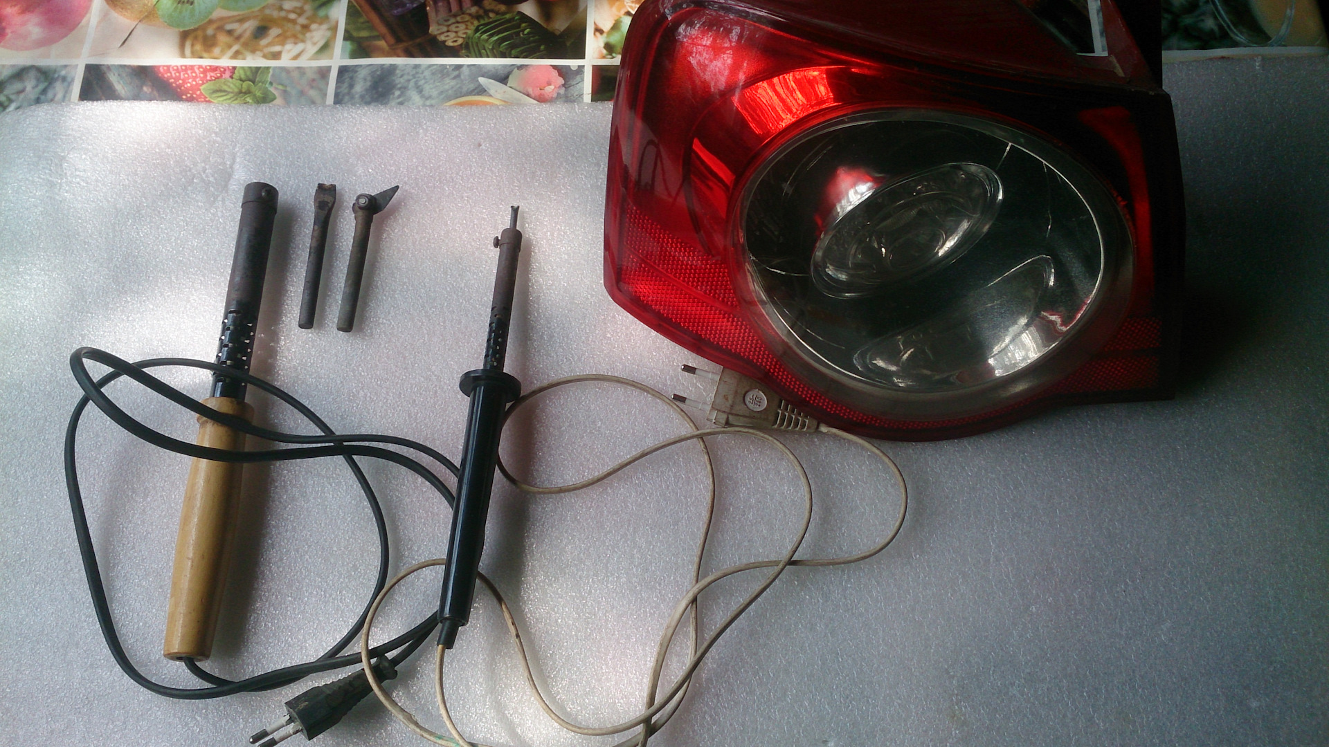 Эту приколюху решил сделать для борьбы с фонарями и фарами на своём пепелаце…Тупо паяльник на 80 Ватт+ вместо родного жала медный пруток пропиленный с одного края и куска полотна по металлу вставленный в медный пруток, короче типа горячего ножа…