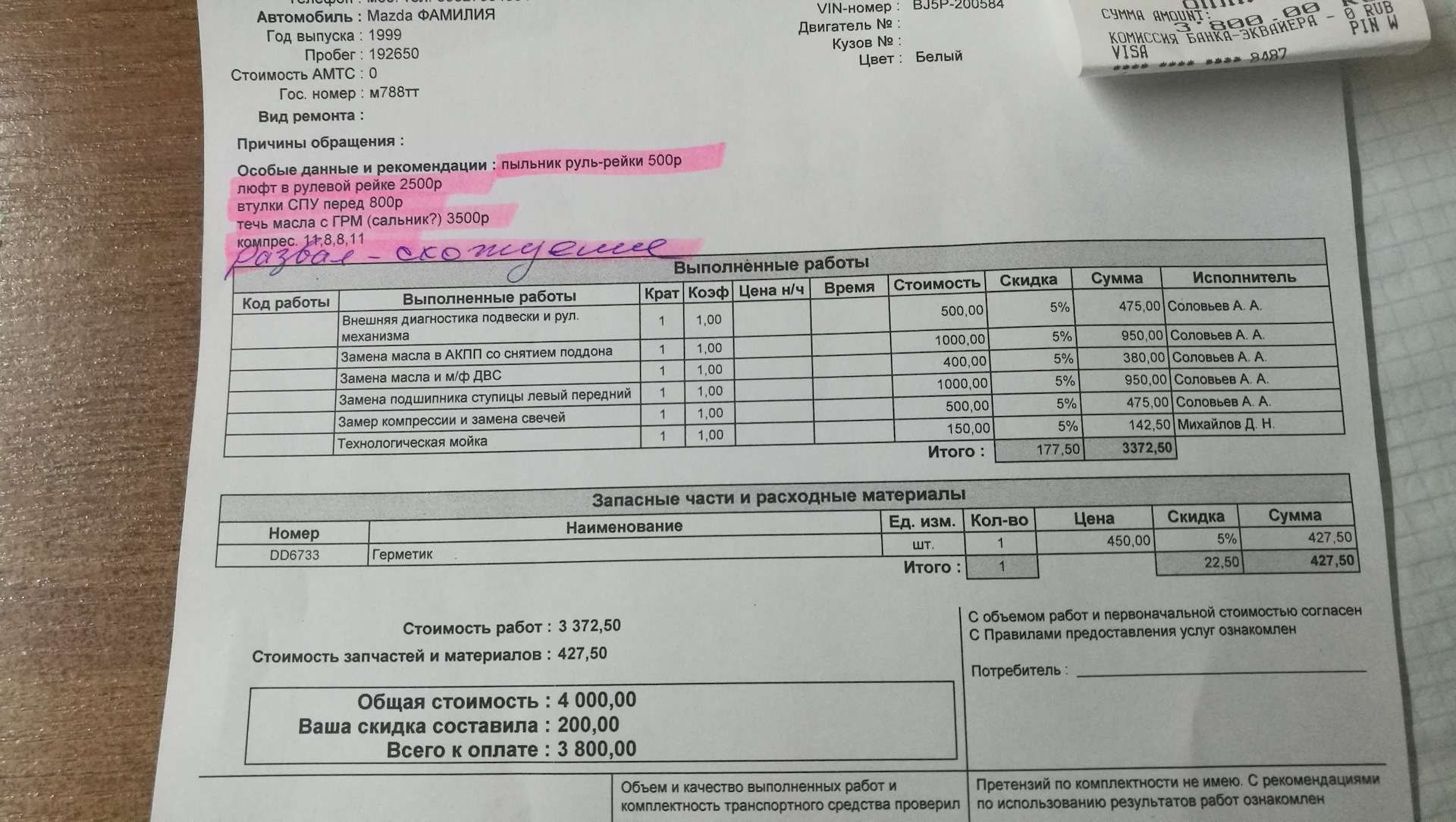 Сделали полную дефектовку ходовой, заменили масло в ДВС и АКПП.