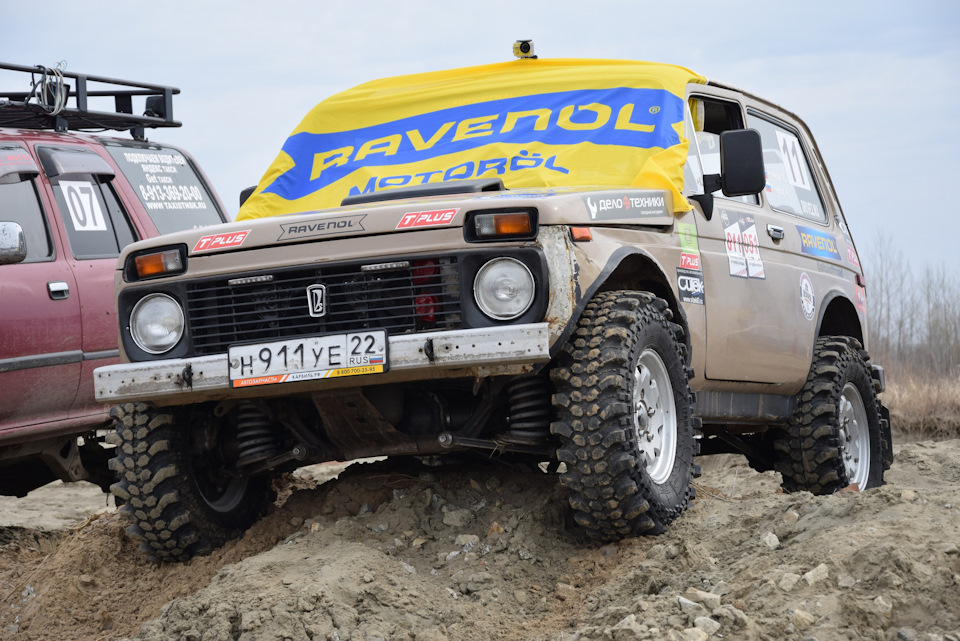 Спринт в этом году логи решили сделать в формате кольца, времени час. Такое уже было на День автомобилиста. В нашем классе 14 машин, ограничения только по колесам — не больше 32". Поэтому от стоковыми нив до уазов на 32", один эскудо, один сурф и один Паджеро.
