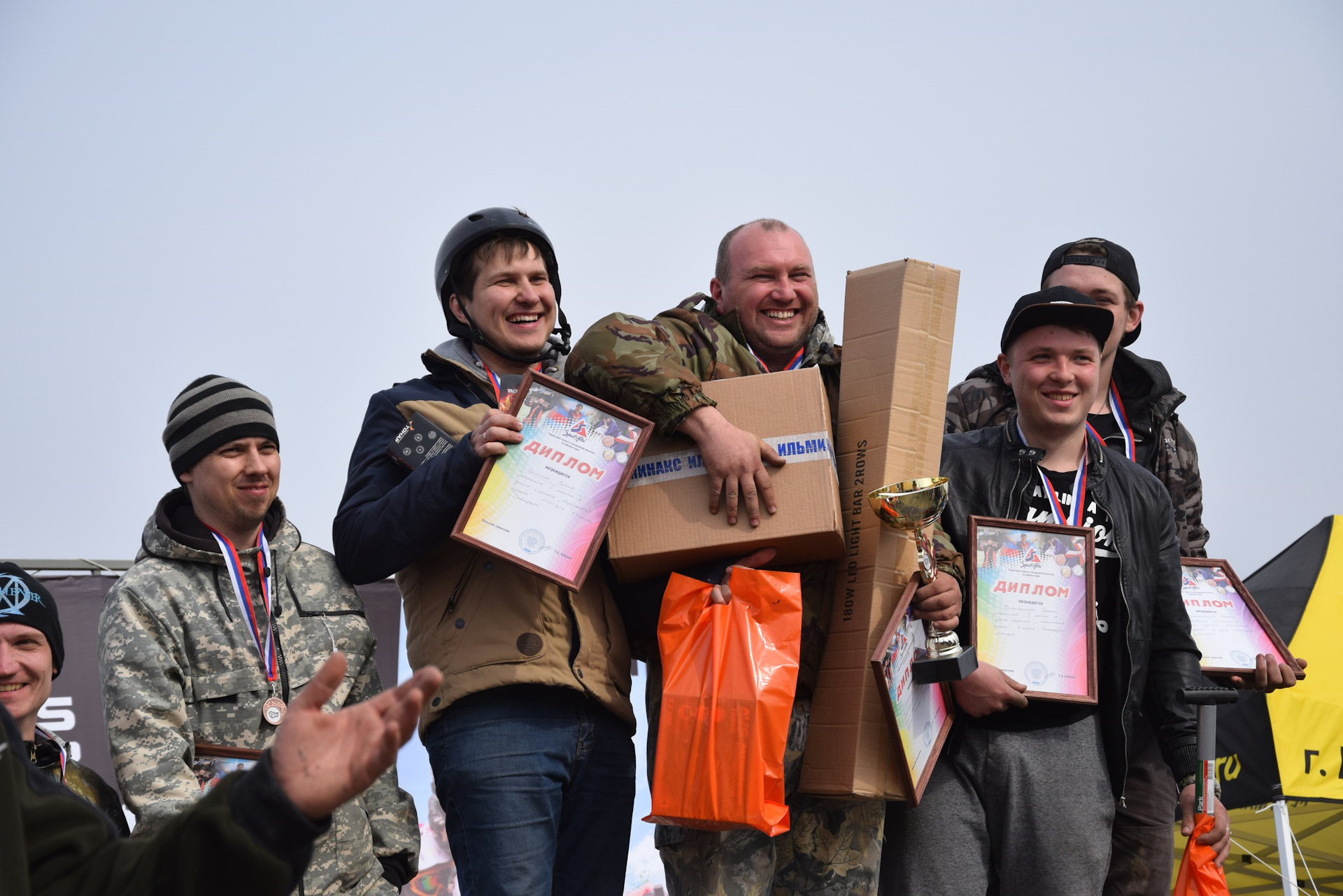 Масстарт, в стартовую зову вставали по жеребьевке, мол у кого первые номера, тот первым выбирает место с которого стартовать. Я вытянул последний номер, 14й)) встал правее всех, нацелившись на траекторию, по которой ни я, никто больше не ездил. На первых кочках труба резонатора отлетает от штанов, звук выхлопа координально меняется, теперь нас слышат все в радиусе пары километров))) на следующих кочках труба резонатора втыкается в землю и еёзагибает вокруг моста… Так мы про ходим первый круг, притом четвертыми.