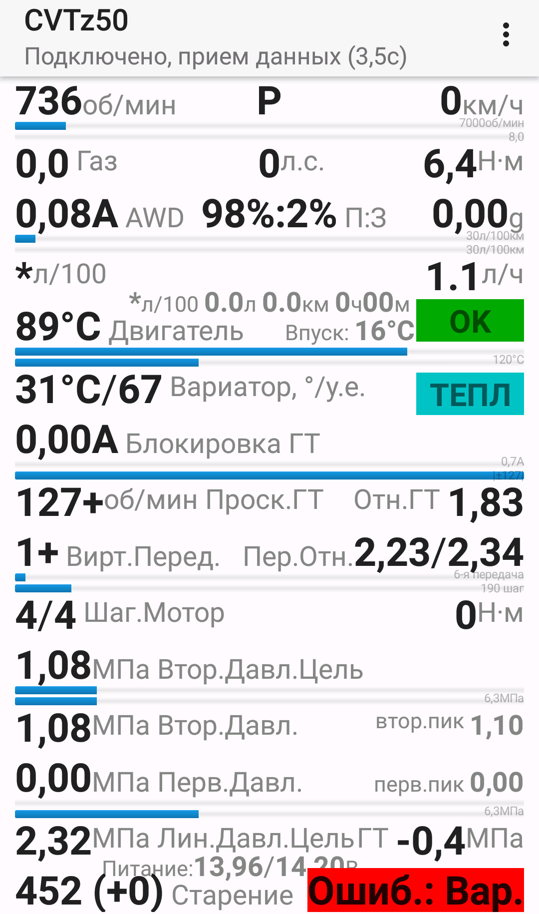 Еще почитал что можно узнать состояние варика. прочитал показания, но пока разбираюсь что они значат.