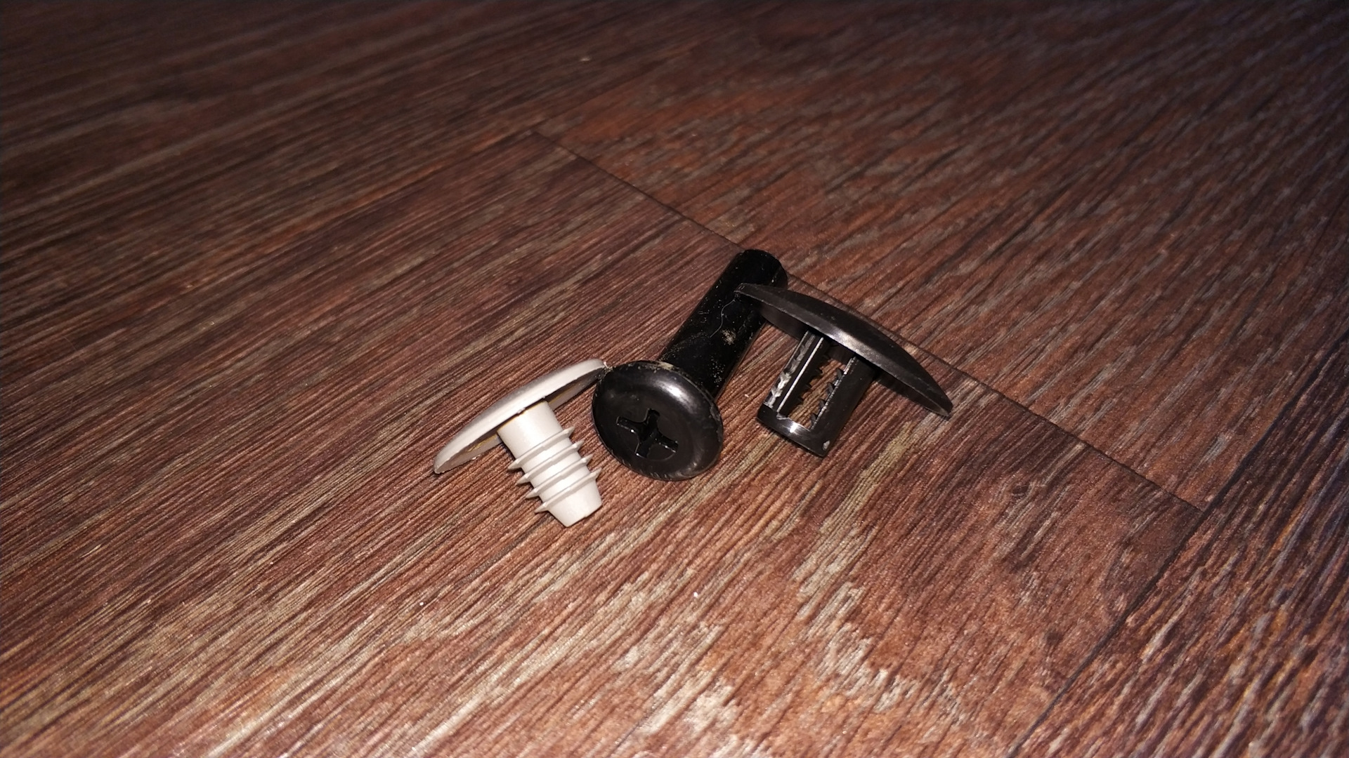 Я долго не мучался, на саморезы посадил чёрные и делов то! А это недоразумение от Рено постоянно отлетает в дождь при езде по мокрому асфальту