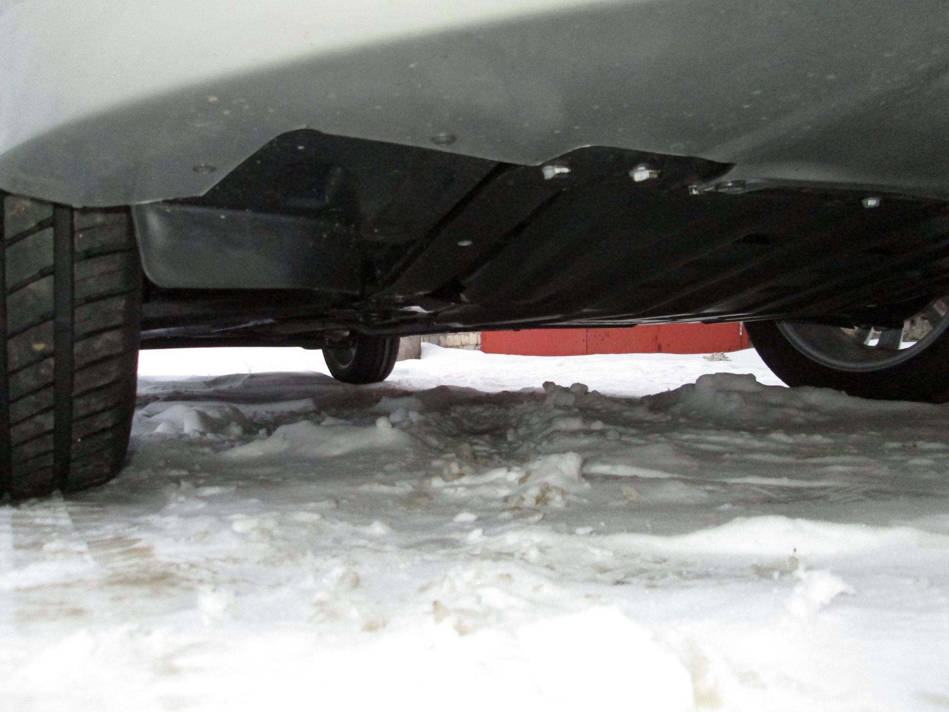 Защита была установлена в салоне при покупке как один из ДОПов. За зиму товарного вида не потеряла, сделана весьма качественно, присутствует жёсткость, отлично окрашена, хорошо закрывает моторный отсек. Толщина 1,8 мм. Крепится на 9 болтов. Цена у дилера 2500р., за установку взяли 600р. К возможному минусу отнесу отсутствие сливных отверстий, но для меня это минусом никак не является — меньше масла прольётся, да и доступ к фильтру удобнее.