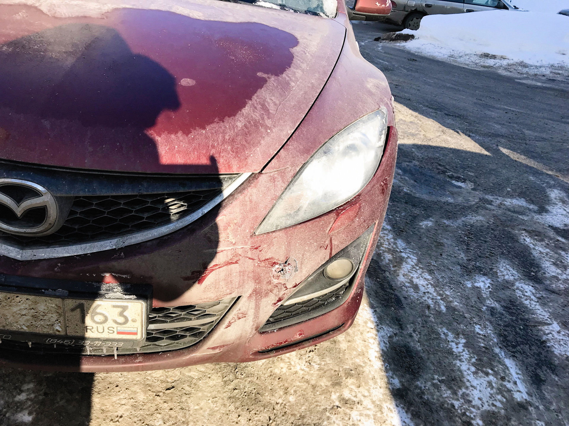 И вот под конец марта я забрал свежевыкрашенные бампера, поставил, заказал губу резиновую на алике, думал, ай красота, еще пара недель и колёса летние воткну, машка — бомба будет. И наступает 1.04, у нас погода в этот день пошутила, снега см 15 точно выпало. И конечно же, во дворах меня нашла груженая грузовая газель, которая не смогла остановиться, ехав мне в лоб, и замяла мне бампер, который я поставил 2 дня назад, и еще крыло замяла.