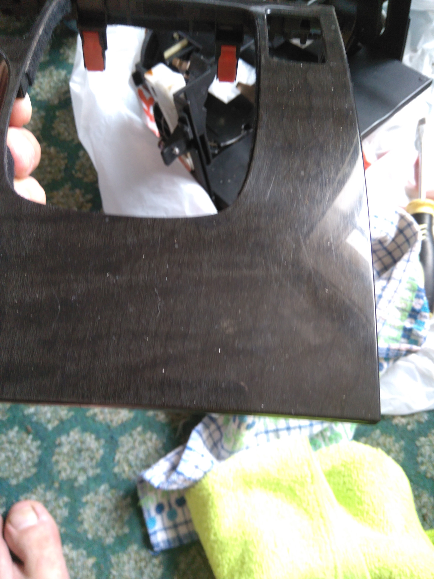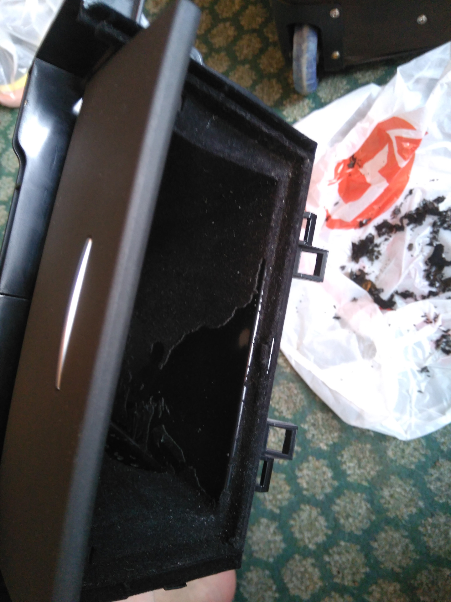 Доброго времени суток друзья!Решил обновить пластик салона, полирнул 3м пастой. С начала грубой, а потом для блеска.Хлебница внутри тоже была вся рваная, потёртая. Обклеил ее антискрипом.Всем удачи друзья!