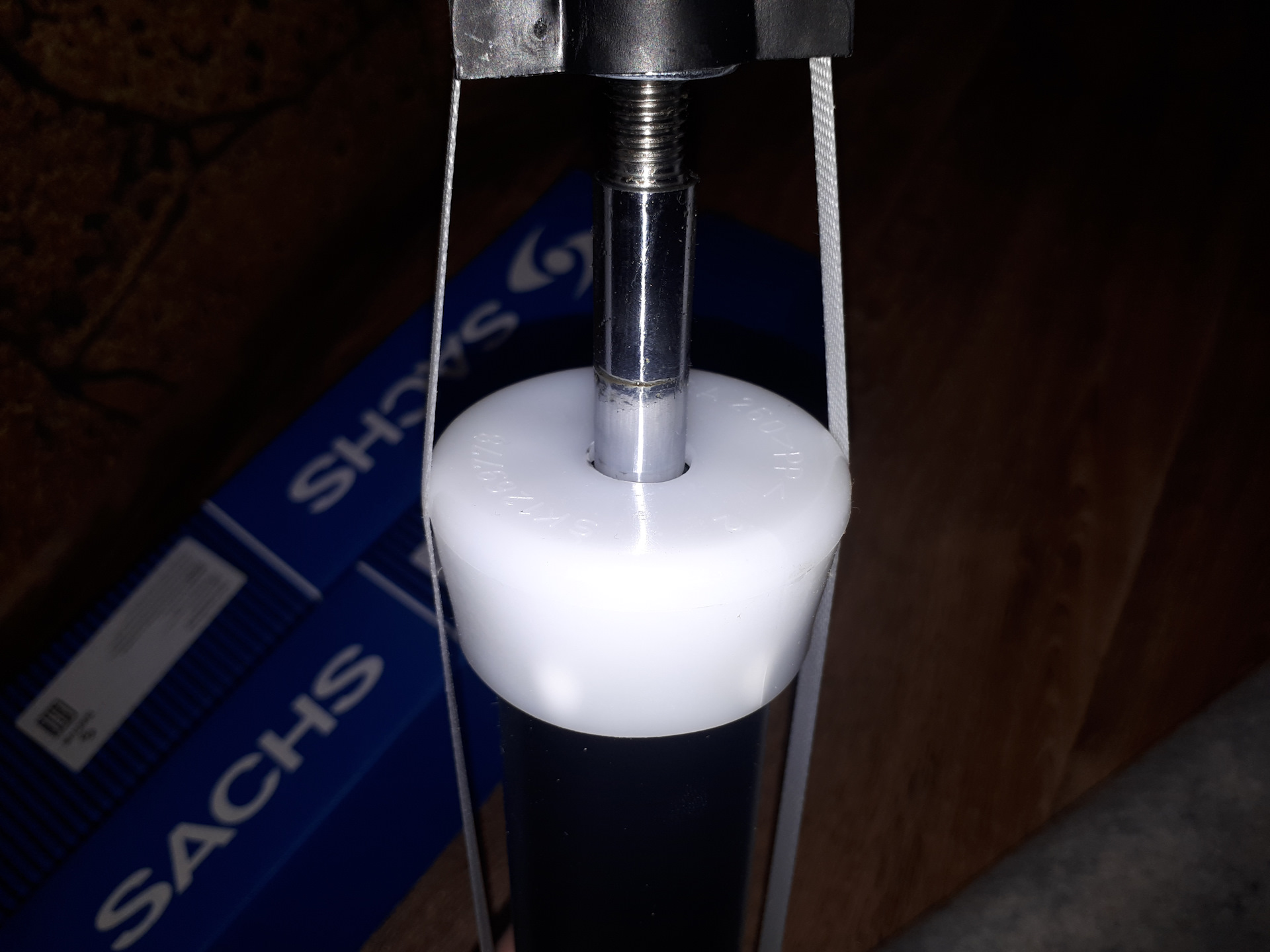 Единственный неприятный момент это то, что при установке стойки у меня не было загнутого ключа на 17 для притягивания штока к опоре. Я зажал в тиски шток максимально близко к опоре и спокойно прикрутил гайку накидной головкой, но на штоке остались задиры((( ну в принципе я знал что так будет но так как в этом месте шток не рабочий то я подумал что ничего страшного не будет. Но позже загнался этой мыслью и стал гонять по поводу задиров, разрезал старый пыльник и посмотрел где они.