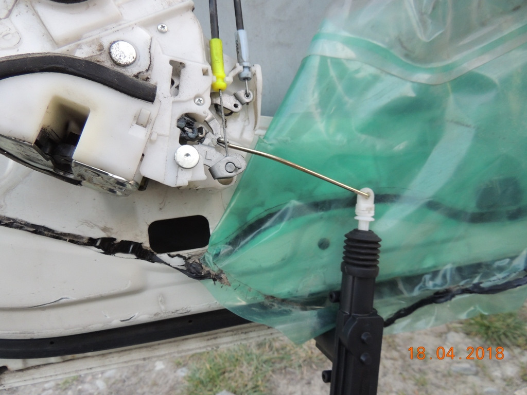 Четыре актуатора один центральный с доп. концевиками, два пульта, блок управления и комплект проводов.Мини инструкция, схема подключения имеется.Снял обшивку левой двери и тут меня ждал сюрприз. Я то думал, по старой памяти, что прикручу, как на Калдине, актуаторы к тягам замка. А тут приводы тросовые. Хотел сначала разрезать оплётку и прикрутиться к тросу посередине, но, сняв верхний слой оплётки, бросил эту затею.Далее, сняв замок, нашёл тягу в которой можно было посверлить отверстие 3,2 мм диаметром и установить в это отверстие тягу актуатора, предварительно примерив, где можно прикрутить актуатор и отрезав нужный кусок тяги.С левой дверью разобрался быстро, актуатор аккуратно лёг в нишу в нижней части двери.А вот с правой дверь замучился, поскольку та тяга, к которой я присоединился в левой двери, здесь служит для открывания от ключа. После пары часов мучений и примерок загнул тягу буквой Г и установил так, как нарисовано красной линией, отломив бортик обведённый зелёным овалом. Фотки делать было реально некогда, хотел более продвинутый отчёт, но получилось как всегда)Актуатор прикрутил к центральной переборке. Механизму подъёма стекла не мешает.Дальше раскидал проводку. По передним дверям фотоотчёта нет, ещё раз тысячекратно извиняюсь. Там я провода протянул через штатные отверстия и резиновую гофру. Проводку для задней двери протащил по передней правой стойке, потом справа под потолком, вытащив пластиковые клипсы. С ними надо быть очень аккуратным, так как клипсы сидят очень крепко, а потолок очень мягкий, можно повредить. Потом протащил провода через штатное отверстие и резиновую гофру.В двери просунул тонкую вязальную проволоку, зацепился за провода и втащил во внутреннее пространство. Установка актуатора в задней двери прошла легче всего, поскольку и в замке специальное ушко присутствовало и место специальное под актуатор имелось.Блок управления спрятал за панелью приборов. Очень порадовал съём панели без единого винта, всё на защёлках. Питание (+) прикрепил к замку зажигания нашёл там чёрно-красный провод который всегда под напряжением, (-) к болту в корпусе Авто. Коричневые провода с диодами которые должны подключать к поворотникам сначала присоединил к аварийке, но поворотники очень тускло светились и провода сильно грелись, поэтому решил не нагружать нежное китайское устройство такой работой, откусил и выкинул эти провода.Проверил с пультов, всё работает. А вот с ключа немного не хватает хода тяги, можно поставить актуатор так, что он будет или открывать все замки, или закрывать. Я выбрал второй вариант. Теперь если сядет батарейка на пульте я открываю ключом только водительскую дверь, а при закрытии ключом закрываются все замки. Эксплуатирую уже девять дней, замок прекрасно работает, с пульта всегда открывает и закрывает, сбоев в работе не было.