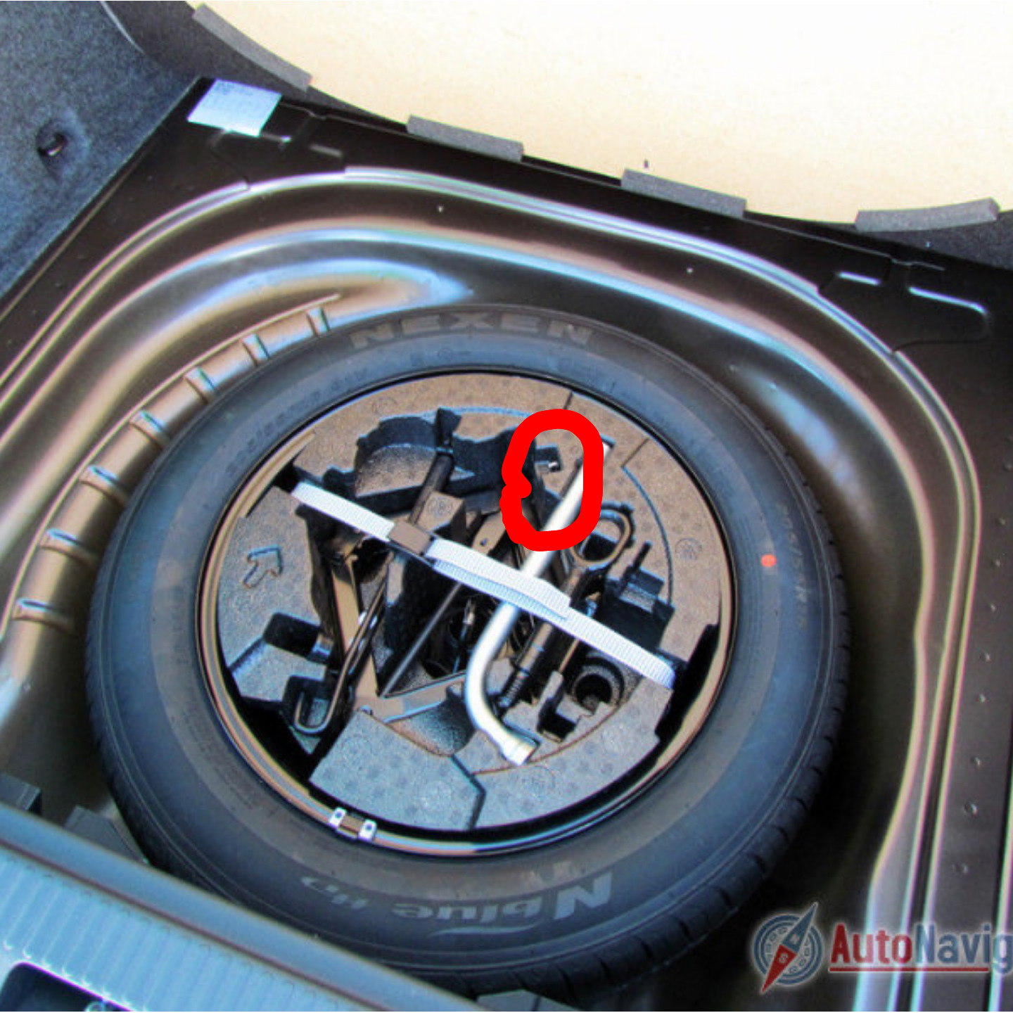 Для начала нам понадобиться съемник. Он находится в органайзере расположенном в запасном колесе под полом в багажнике.