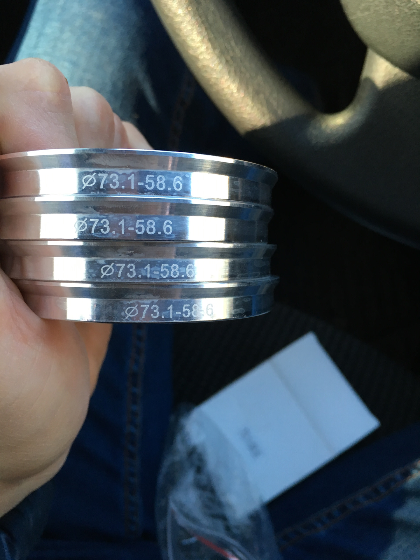 1) Центровочные алюминиевые кольца (по-другому супинаторы) с размера DIA 73.1 на заводской размер 58.6,