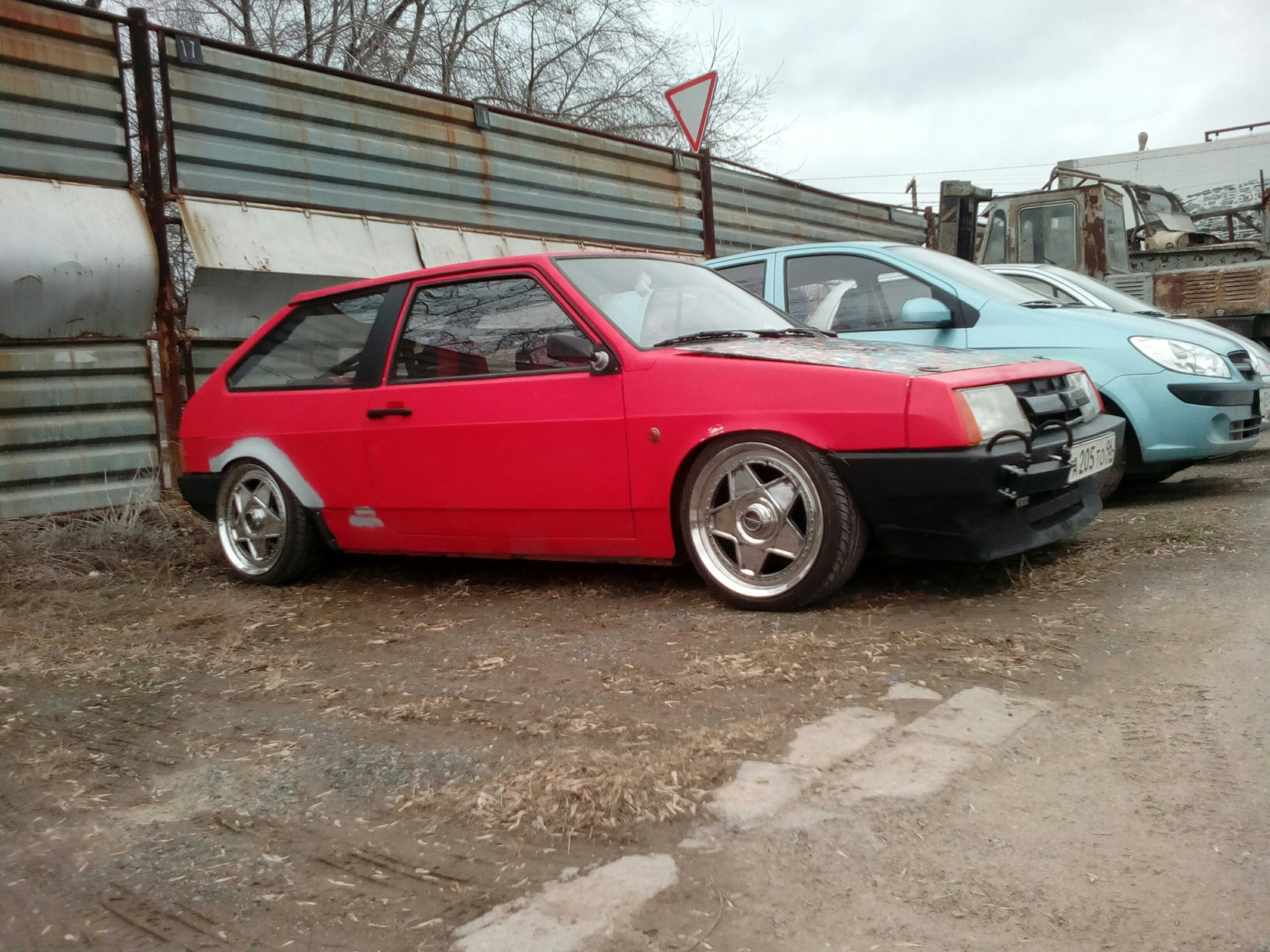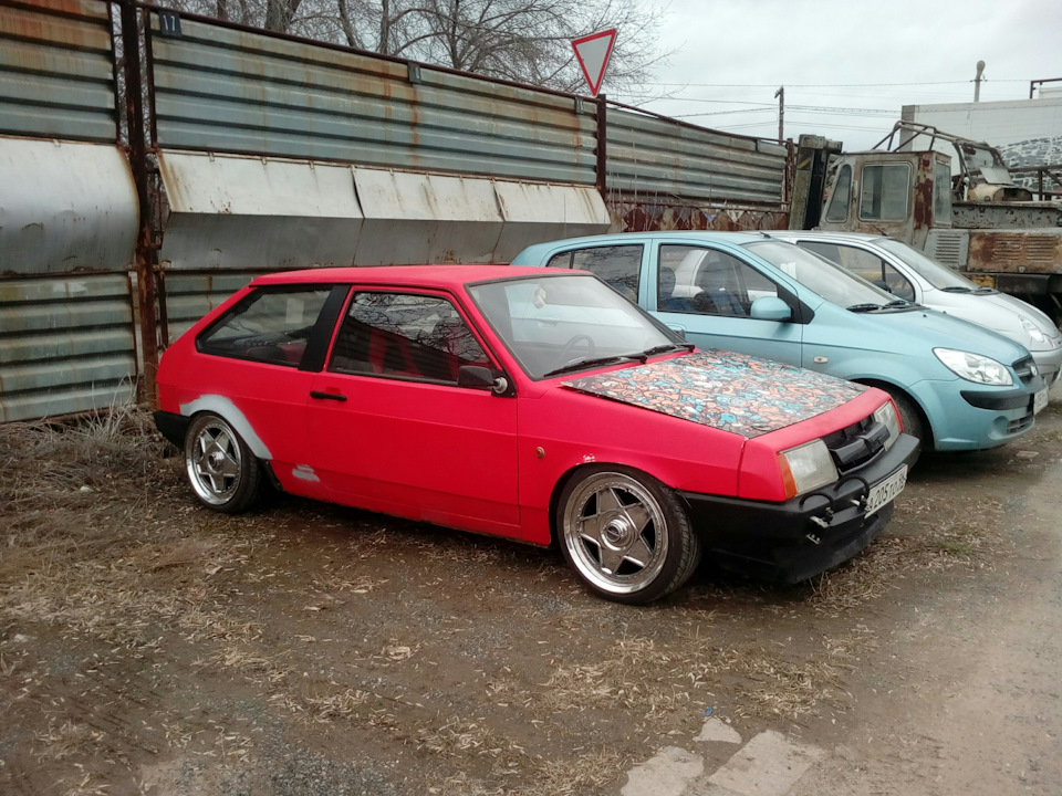 Вчера с помощью дощечек, досок, домкрата и чьей-то матери вытащили машинку из гаража. Из проблем: нужно было покрутить правый передний винт. При запуске машины пошёл дикий фон с генератора на акустику, всё проверил, оказалось что нужно было плотней воткнуть межблоки в усилитель — пропал и фон, и пук при выключении. По внешнему виду — менять передние крылья и убирать -1градус развала на задней оси — всё из за того что диски пересобраны центрами наружу. Из офигненных бонусов: машина поехала…мягко! Ну не как пневма на толстой резине и торусах, но морда перестала прыгать. Ватвызфак сказал бы какой нибудь интернет мем, но тому есть объяснение: стойки я укоротил, появился ход, хэлперы дали довольно жёстким пружинам занять правильное положение от того подвеска стала нормально рабочей. ОфигенночО. Ну и пара фоток брички: