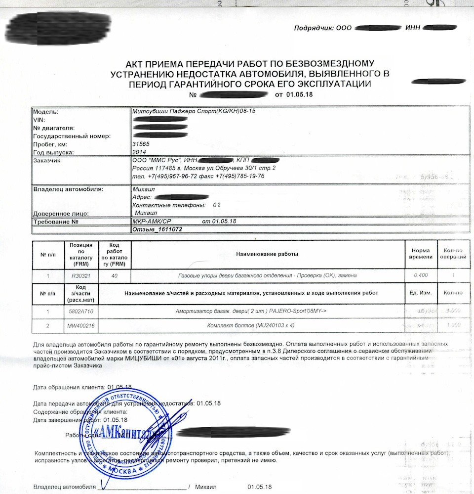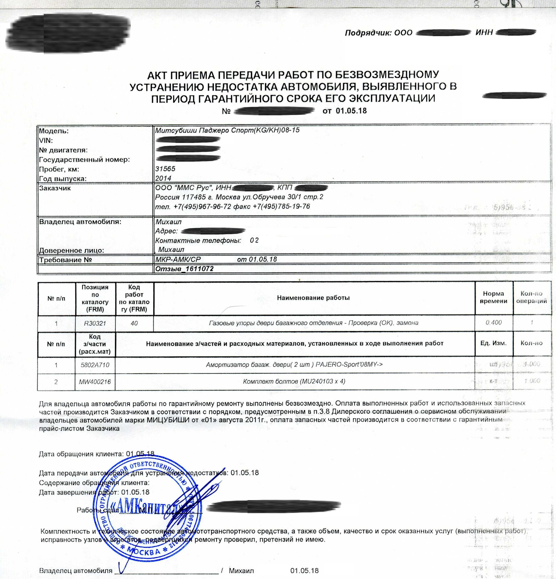 Машину не помыли (сославшись на то, что с боксом она не влезла на мойку), да и изменений в работе двери багажника я не заметил.