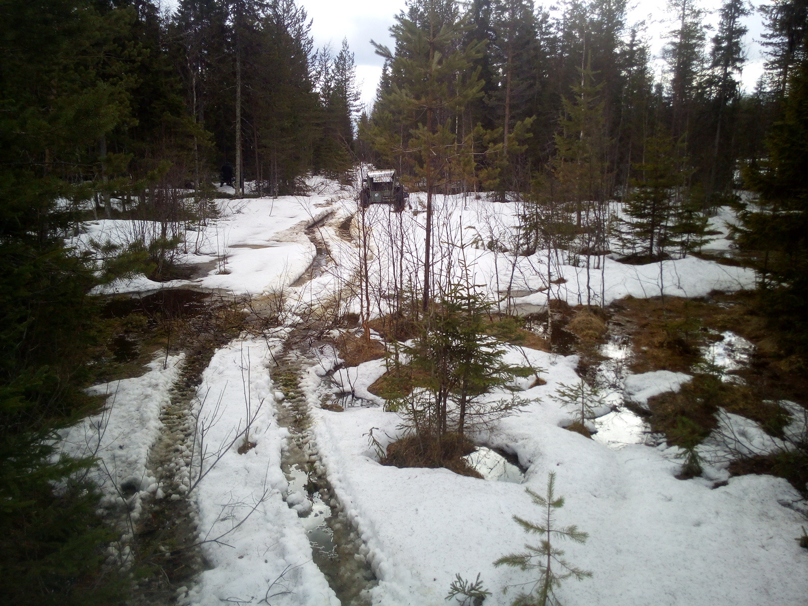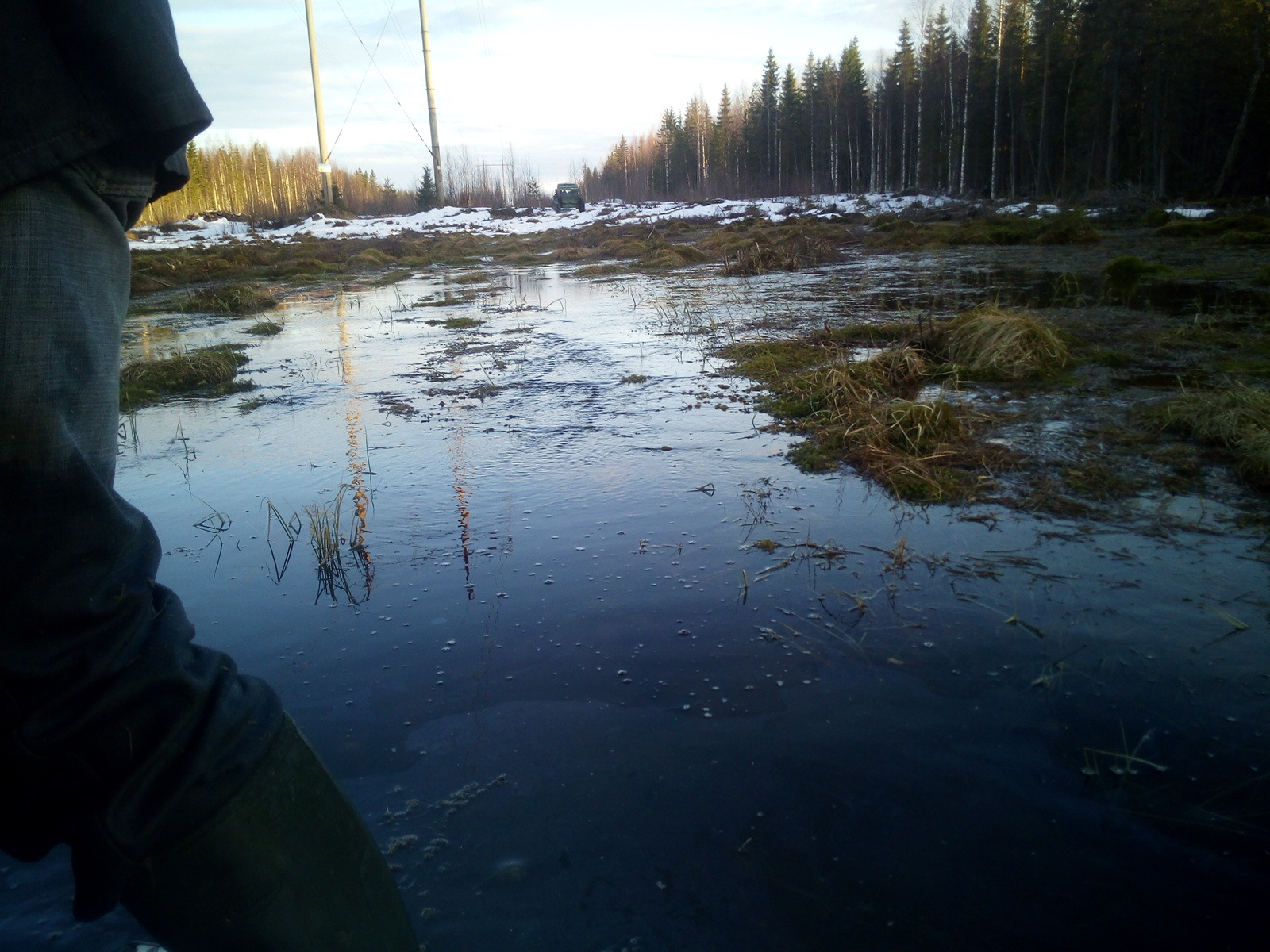 На втором болоте уже засели мы . Глубина воды около метра и снег. Сдали назад и прошли с разгона.