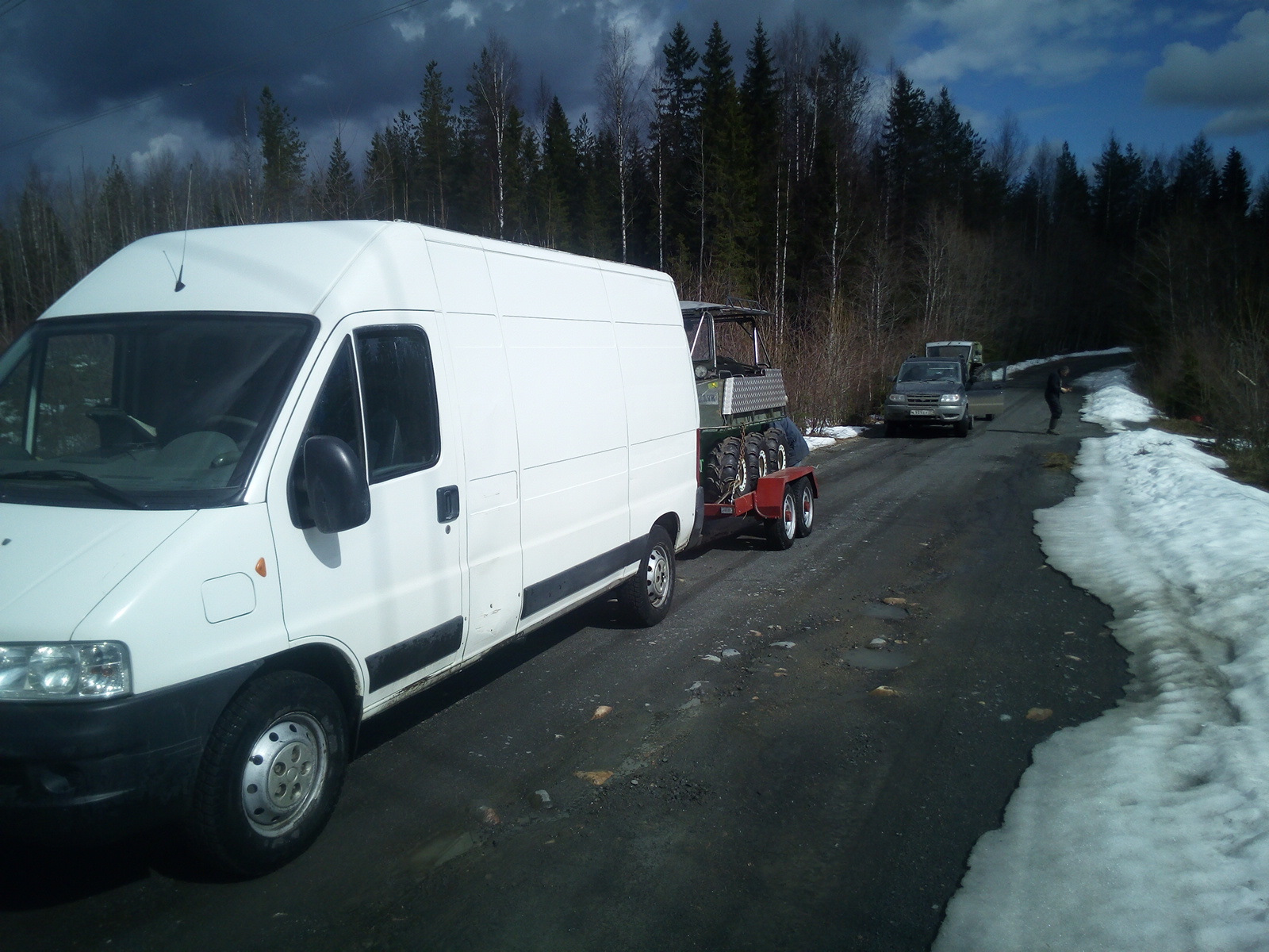 Прицеп едет очень хорошо. Вездик не раскачивается. Ставим доски и сьежаем.