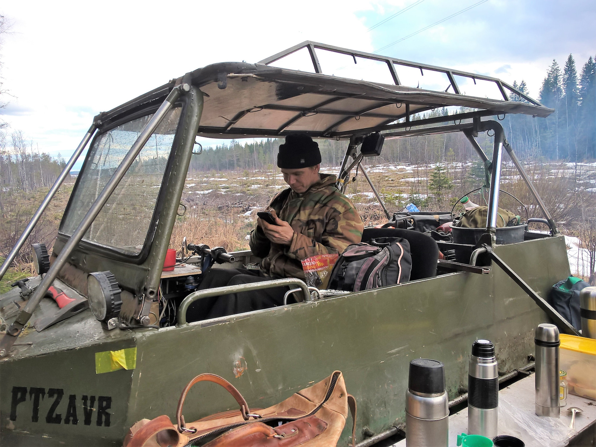 Готовимся к ладоге и я решил провести тренировку . Основная задача было установить влияние условий в машине на выносливость экипажа. Всем понятно что подвески нет и ехать долго в траске не получится. Однако надо продержаться несколько часов. В связи с этим были изготовлены сидения с подвеской и амортизацией для каждого. А также надо опробовать улучшение гусеничного хода в болоте. На новом редукторе еще не были в болоте.И к тому же произвести обкатку нового самодельного прицепа на резиножгутовых осях.