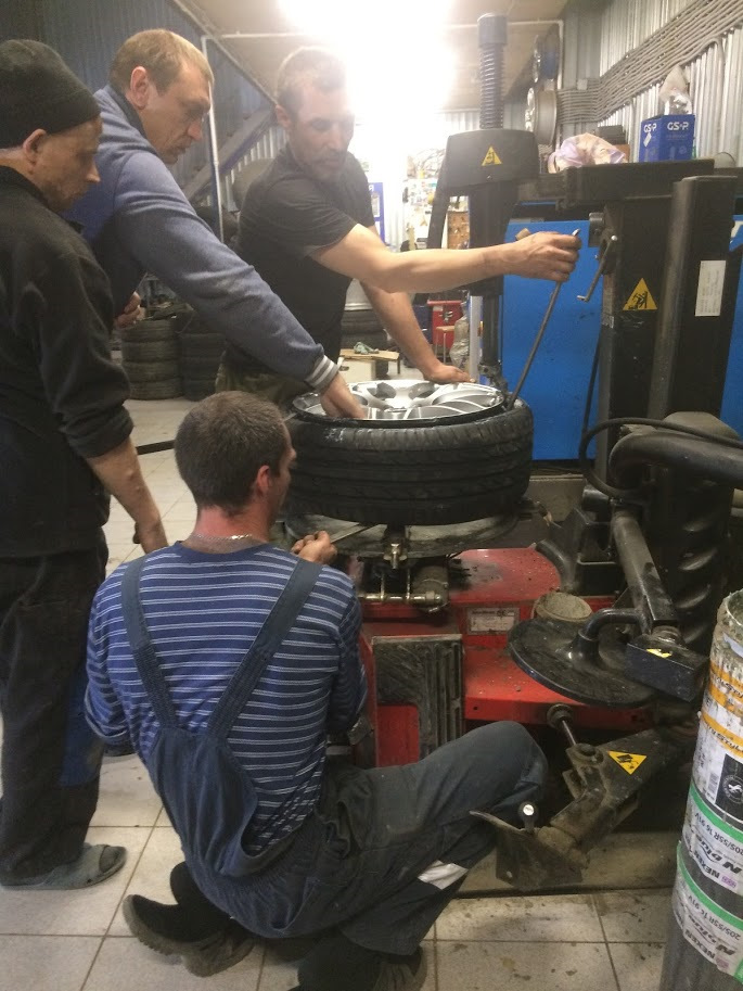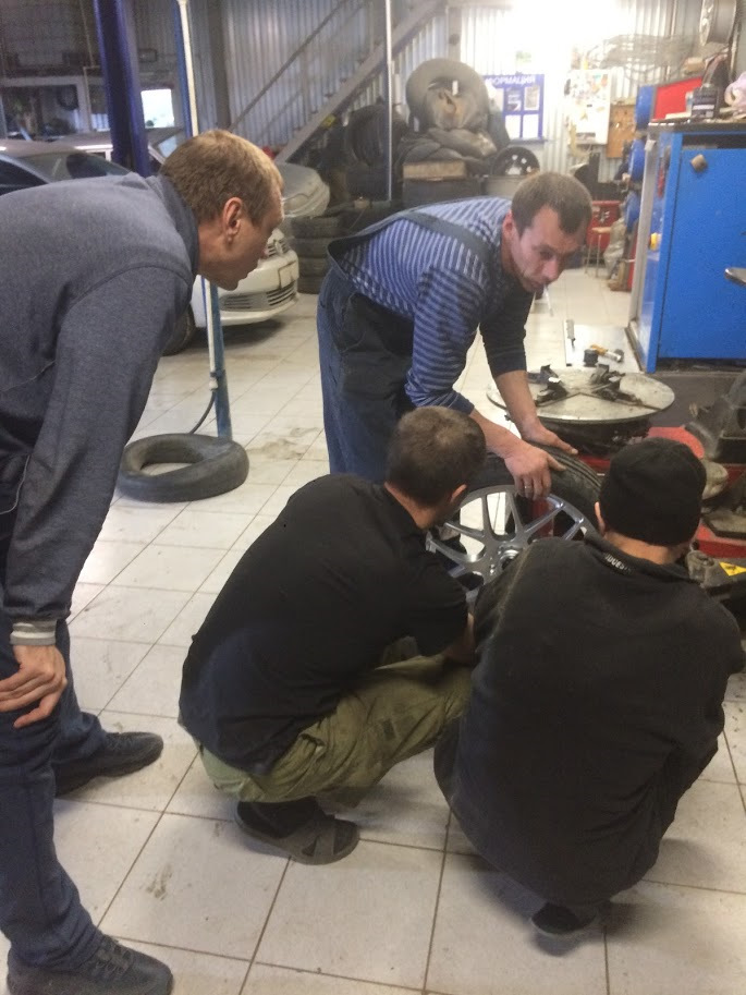 Требования были жесткие, снять шину, не повредив диск. Ребята справились, привез им ящик пива).