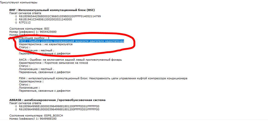 После сброса ошибки, появляется снова после запуска двигателя. Пишется только в BSI