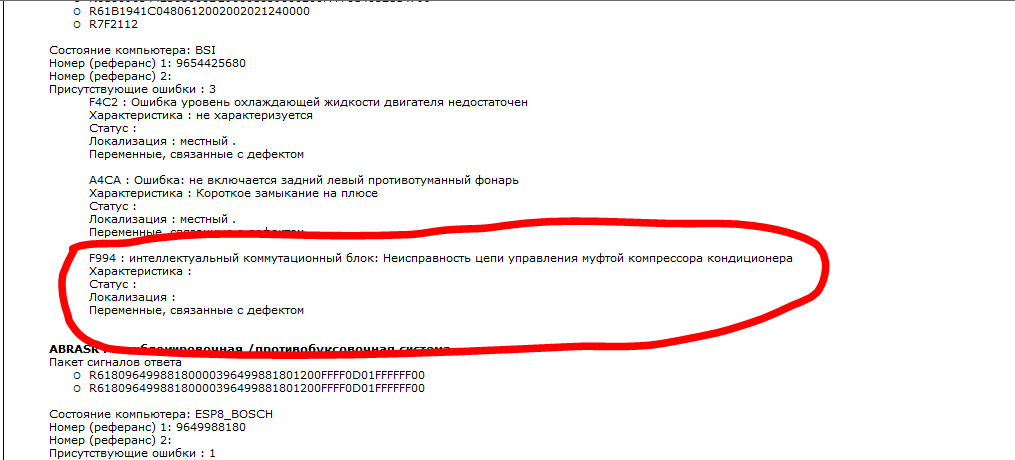 И так коды не исправности. В моей машине и в машине в которой нет хладагента.
