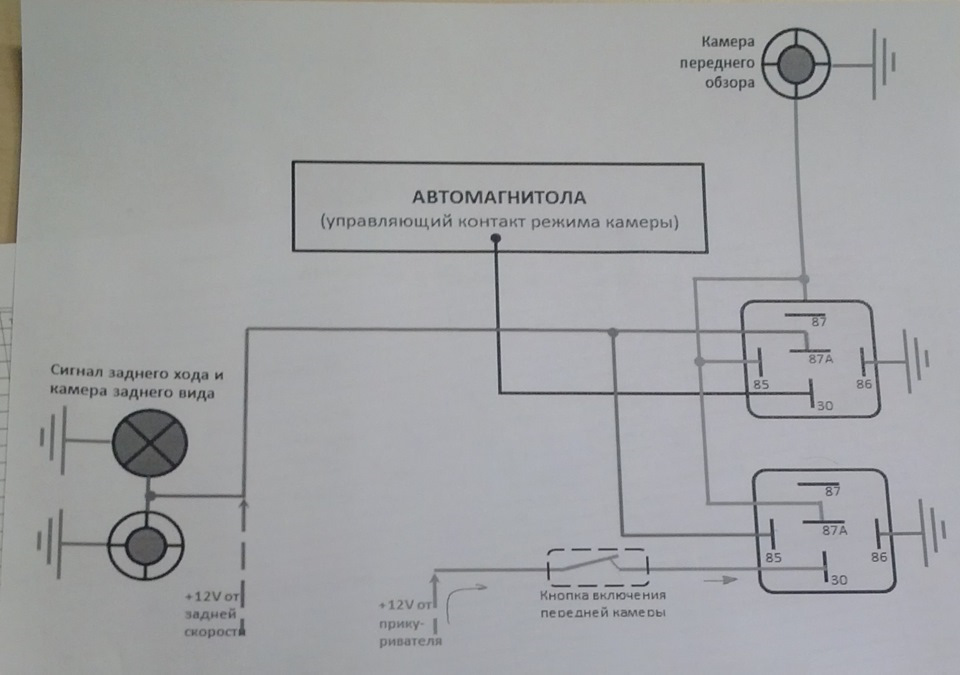 Привет) всё по красоте сделал, без камеры передний бампер долго не продержится)) а я сделал на один вход в ГУ, с одним реле и кнопочка слева от прикуривателя)