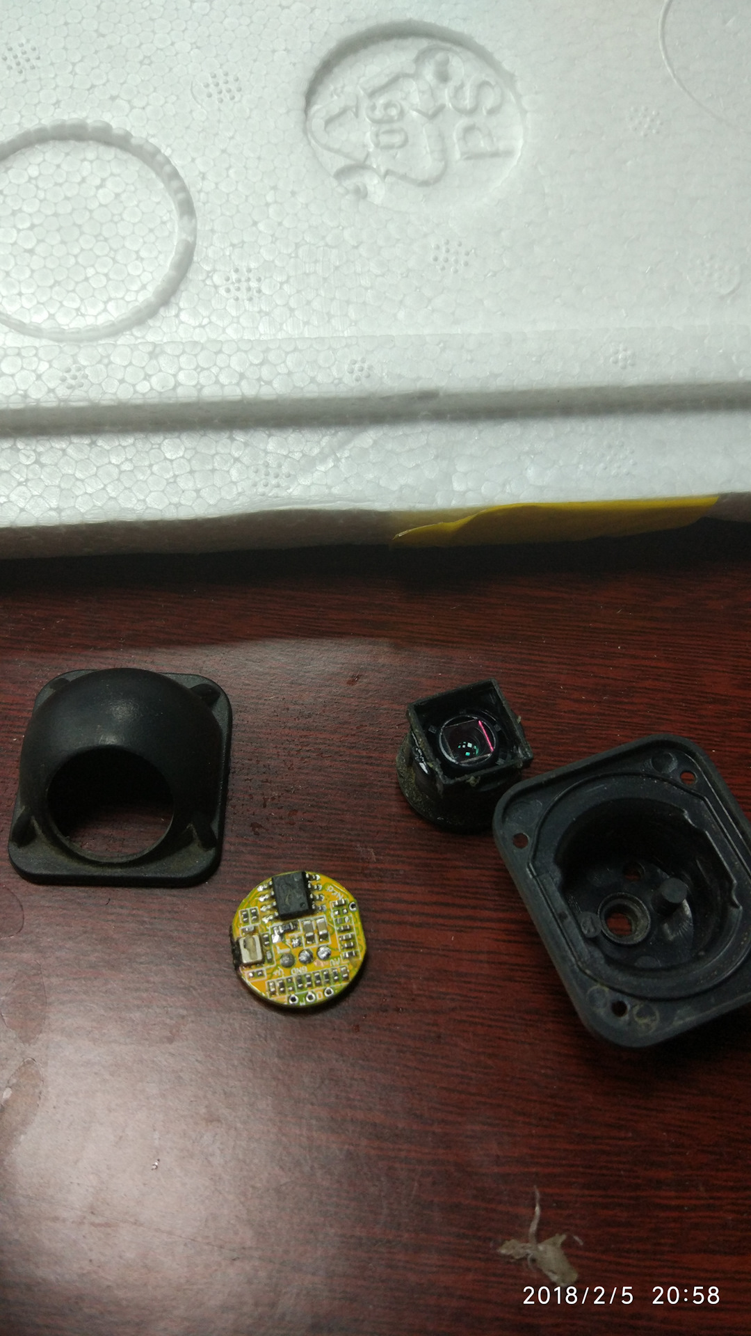 С алиэкспресс были заказаны две камеры заднего вида. Но есть одно но! Большинство камер заднего вида зеркалят изображение, а так как мы одну собираемся ставить впереди то надо было это исправлять для чего была выполнена полная разборка самой камеры и выпаивание одной перемычки на плате камеры, как раз отвечающей за зеркальность изображения на магнитоле.