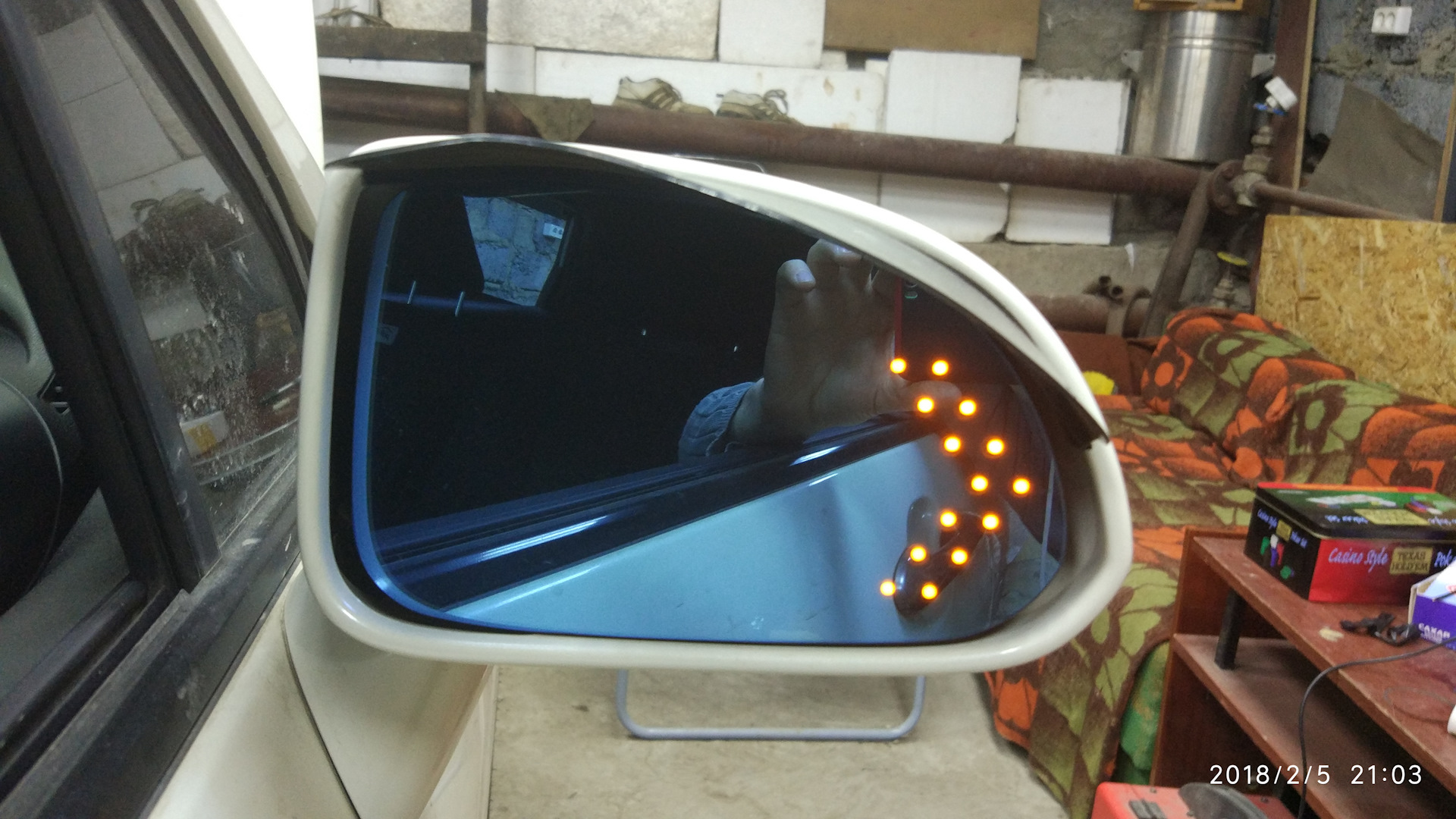 Теперь о полотнах зеркал. самым сложным было протянуть провода — от зеркала до солона. Подогрев зеркал подключил на кнопку включения обогрева заднего стекла, повторители поворотников подключал на приборку.