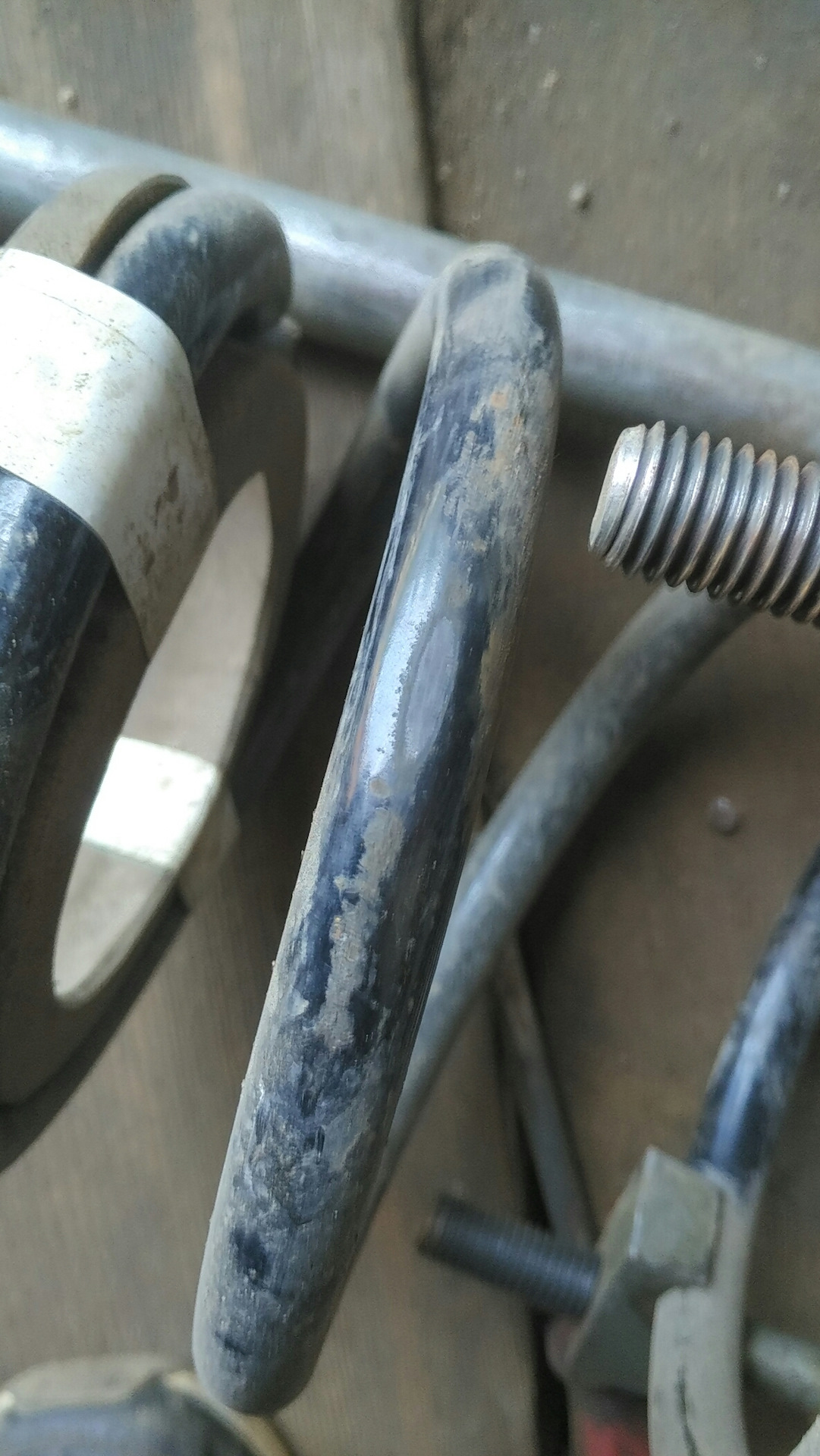 Как раз та самая пружина Фобос, которая с новья просел! Ну думаю, попробую перевернуть её, может хотя бы скрип уйдёт. Помогло, но пружина так и осталась просевшей.