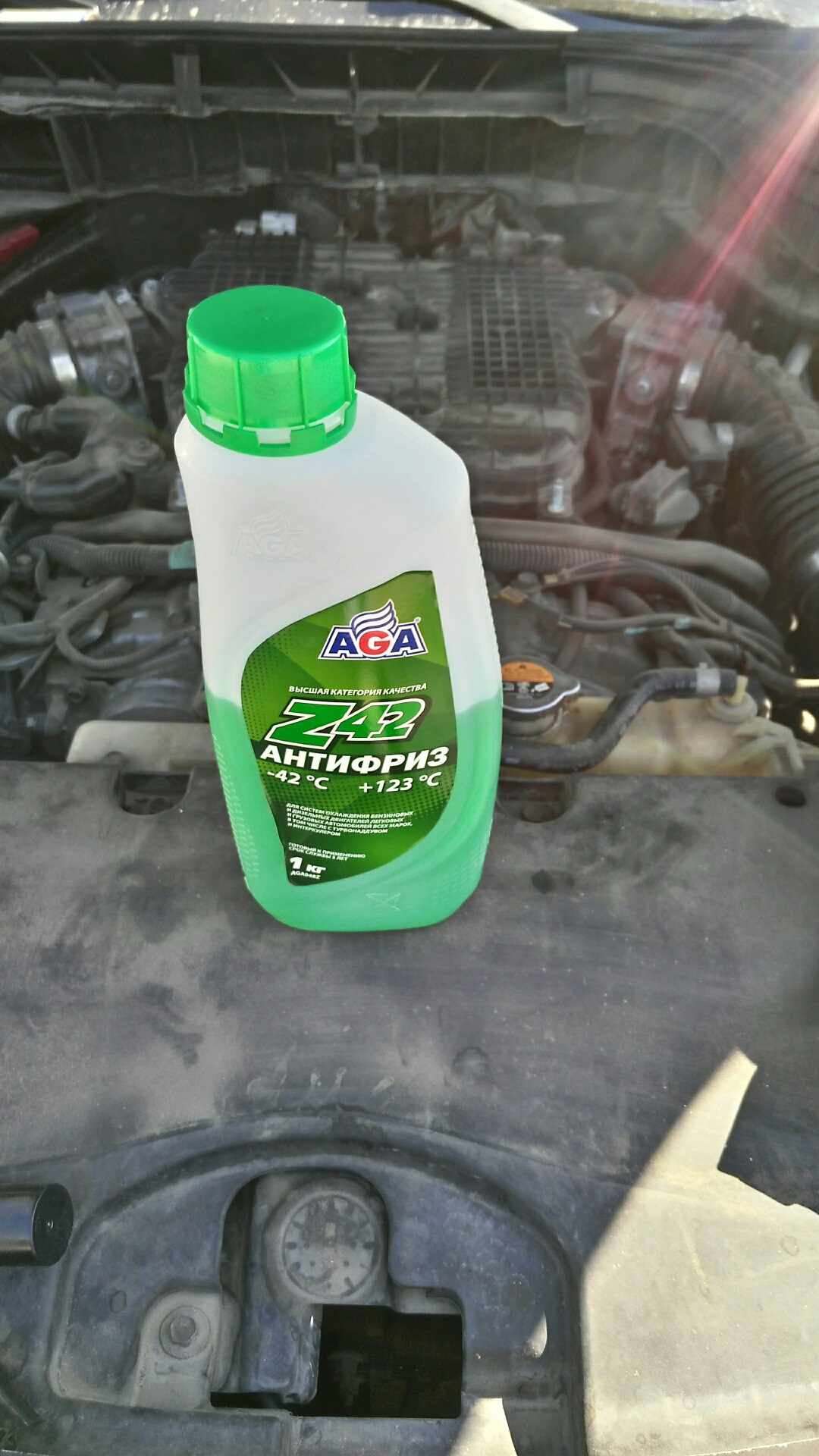 в бачке антифриза ниже минимума…долил 1,5 литра…Был в гараже 2* 1л.зеленый.на метилгликоле…вобщем обычный дешевый…для доливки подойдёт…сделал чуть выше уровня середины…
