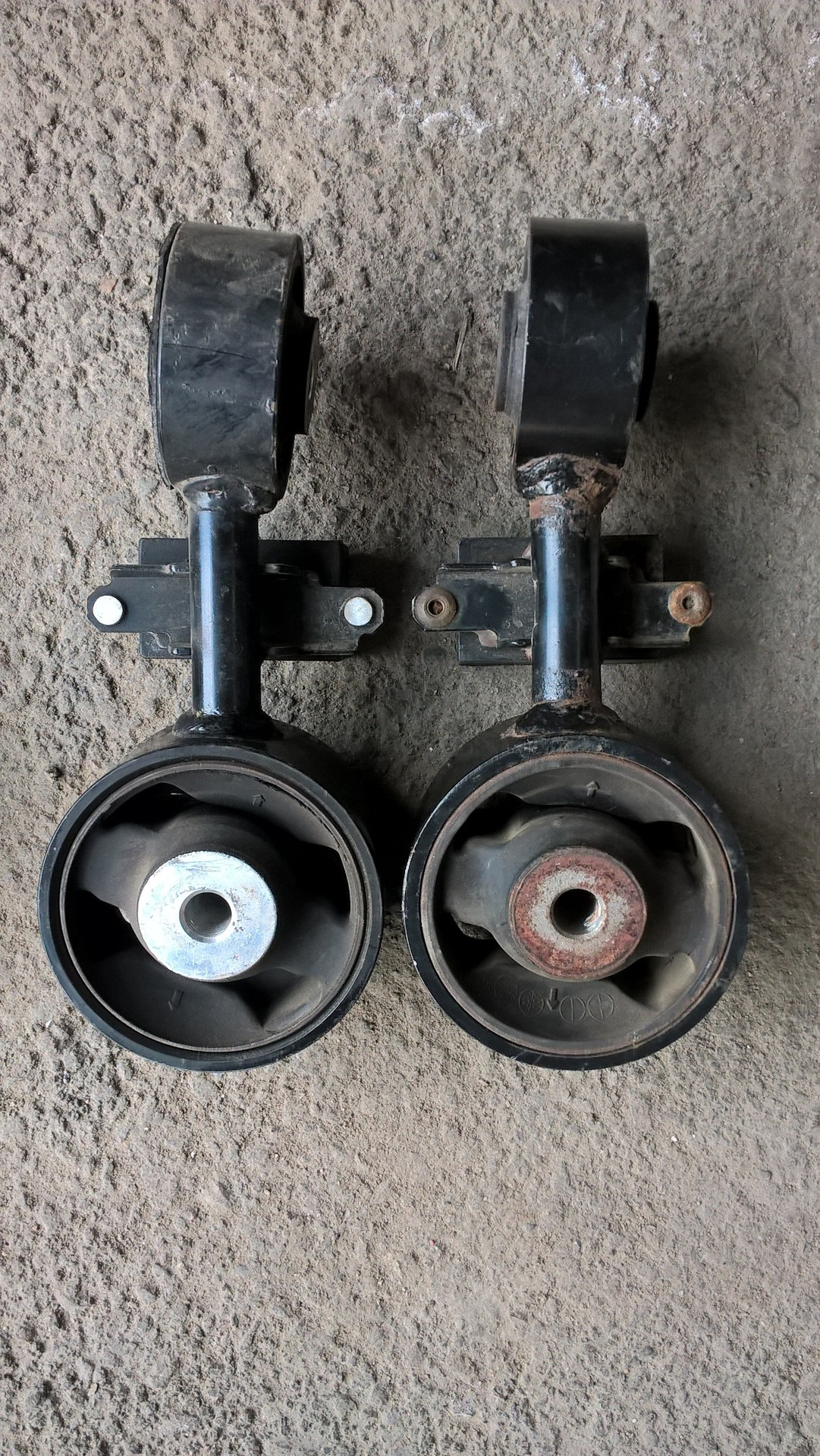 Решил заменить еще и верхнею подушку . На стоянке снял ее ( стояла SAT ) менялась 2.5 года назад, на вид нормальная сама резина по сравнению с моей старой мягкая в размере идентична ( где то читал что вибрация может быть из за различия в длине ), раз снял решил экспериментально воткнуть свою старую . (когда то менял ее в надежде избавиться от вибрации ) .