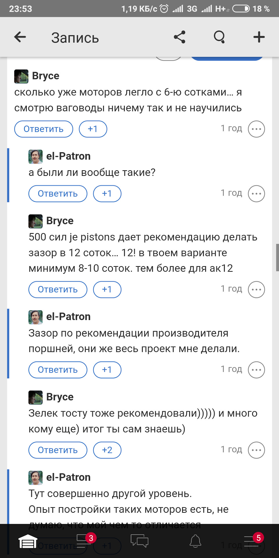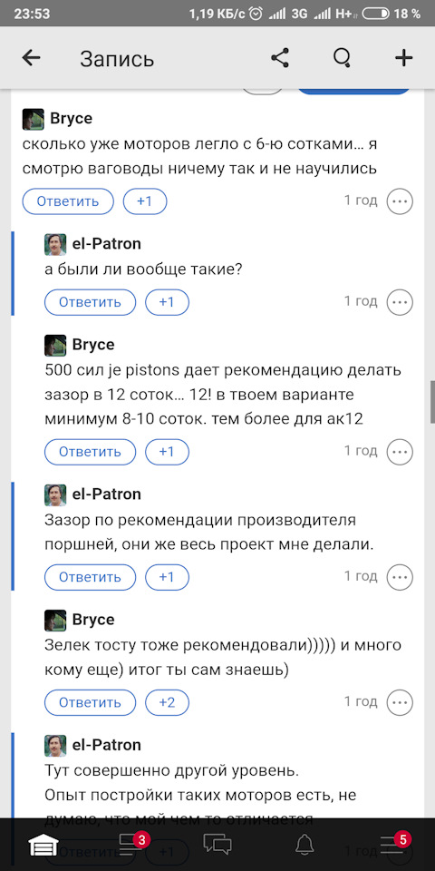 А ведь в прошлой в записи бж bryce говорил зазор минимум 8-10 соток. Очень жаль видеть такие записи — думаешь профессионалы и доверяшь, а далее такой трэш. Хотя я тоже послушал производителя поршней СТИ и расточил на 0,06 мм. На сегодняшний день пробег 18 тыс, дую 2,1 бар, слава Богу пока не рыгнул старичек 1,8т 20v . Все собирал сам, если рыгнет, то винить только себя.