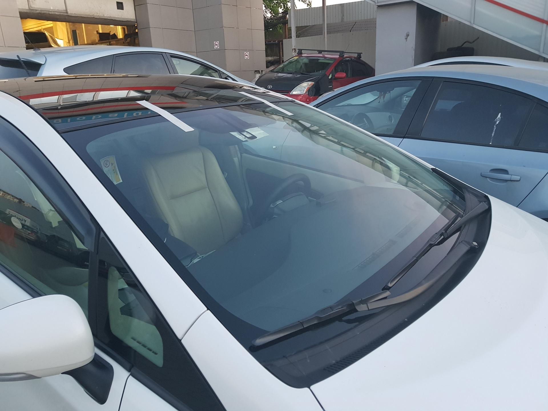 Всем привет! Вчера позвонили из магазина, где заказал лобовое стекло и сообщили, что можно его забирать. В магазине уверили, что лобовое стекло у всех машин помещается на заднем ряду поперек авто. В итоге 20 минут корчился чтобы его разместить в авто поперек. Никак не лезло ни поперек, ни под углом. В итоге плюнул, перенес детское сидение на переднее пассажирское, сложил видения и положил в багажник стекло. Отзвонился в сервис, договорился и вечером вчера отвёз машину туда. Сегодня поехал забирать. Приехал все устраивает. НО! Многие люди у кого Приус с проекцией на стекло сталкивался с информацией о том, что если ставить не родное стекло, то проекция будет двоиться, из-за отражения от внутренней и внешней поверхности стекла. И вот у меня как раз машина с проекцией и лобовое стекло по вину стоит около 50.000р плюс установка. Заказанное мной стекло хоть и родное, но для приусов без проекции. Я был готов к двоению проекции и уже заказал пленку на пробу. Так же мне в магазинах не могли ответить с датчиком дождя это стекло или нет (оказалось без ДД). В итоге- проекция НЕ ДВОИТСЯ. Я по приезду домой сидел в машине и высматривал двоение — НЕТ ЕГО! ВСЁ ЧЕТКО!