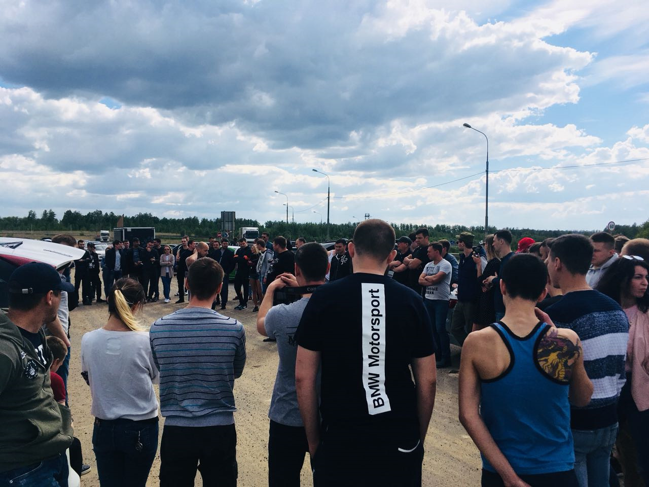 И чего, вот так прям посреди трассы собрались днем и поехали? У нас бы господа полицейские приехали в течение получаса)