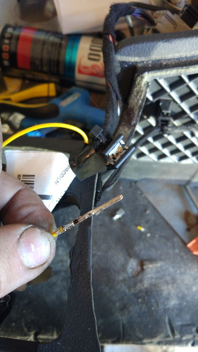 Ну а затем — необходимо было дополнить разъем жгута. Вообще используется некий хитрый пин от VAG'а, но я пошёл по другому пути. Для этого был взят пин от ВАЗовского разъема (2 мм), тщательно пролужена часть для вставки и первая примерка — широковат. Напильник в руки и вперед!