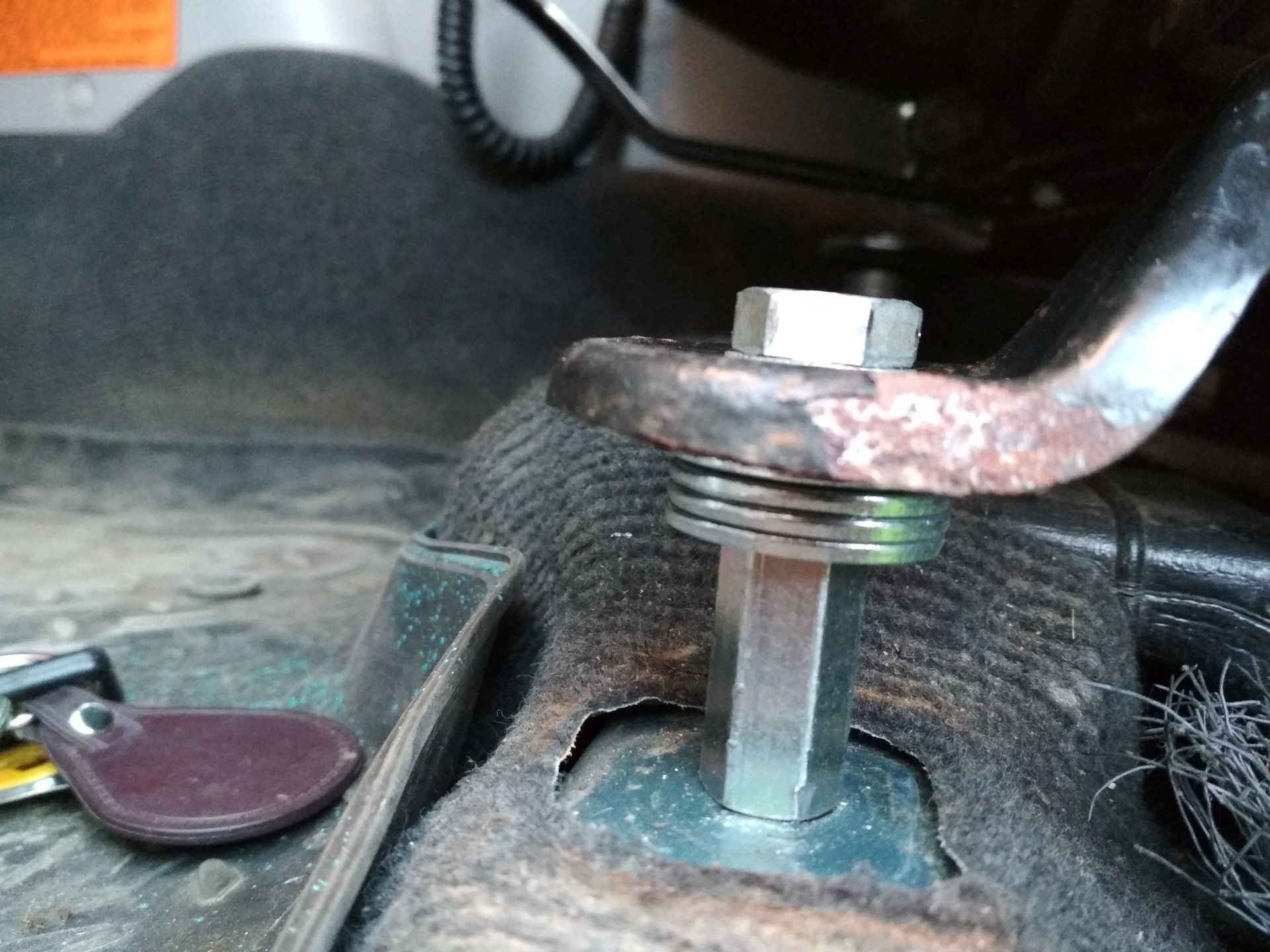 Тем кто в комментах охаивал данное исполнение типа вследствие малой надежности. Болты в шпильку заходят на всю глубину резьбы, также как и в стандарте. Проставки только под передними опорами. Опять же даже в случае серьезного ДТП, единственный варик когда они нагрузятся, это исключительно удар сзади. Потому я уверен, что той самой волговской шпильки и ее жесткости за глаза хватит для своих задач применительно к новым условиям эксплуатации)))